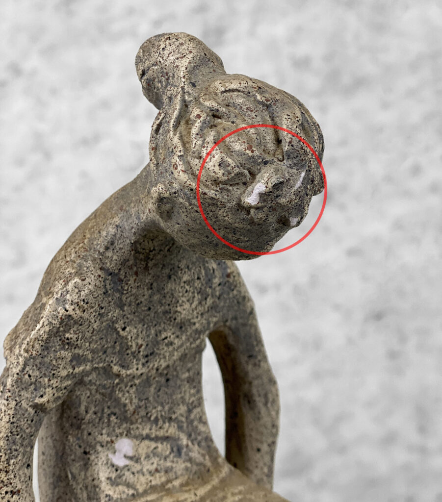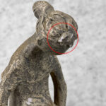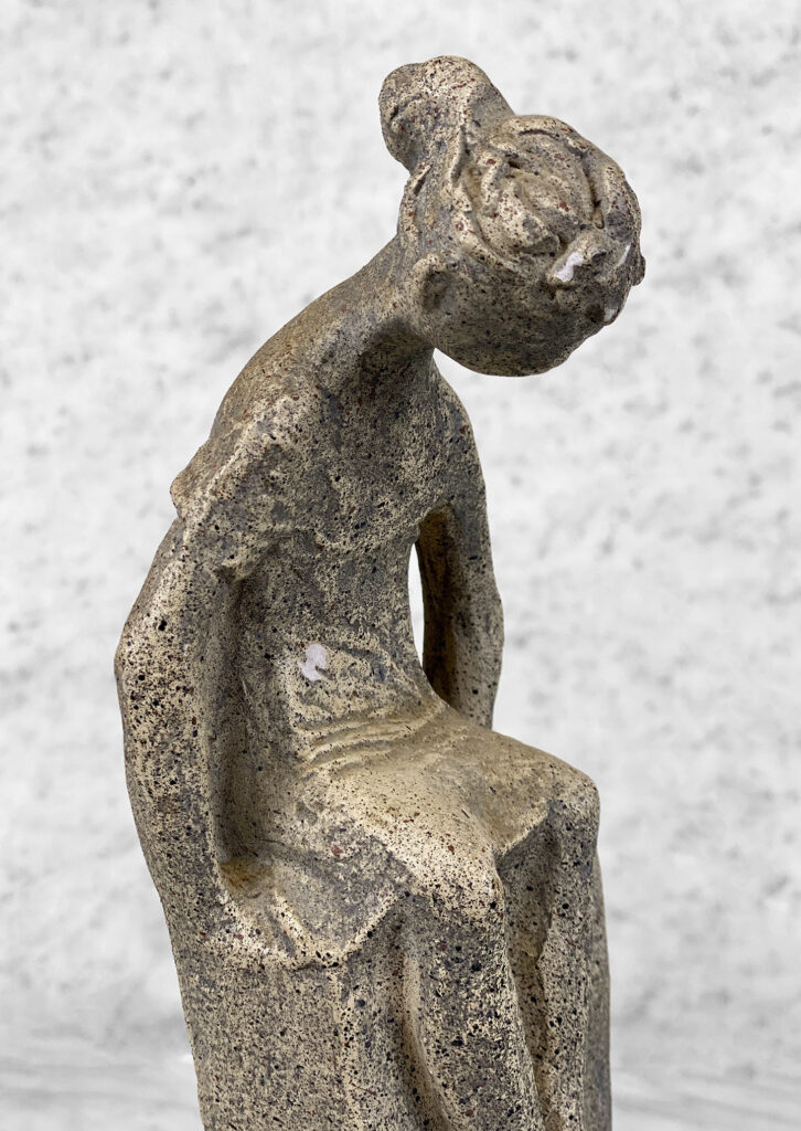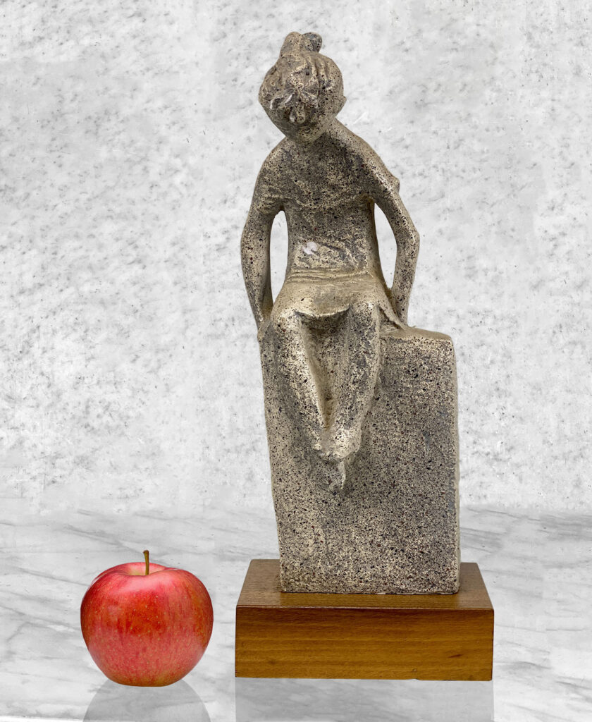 This Sculpture is in overall good condition. A small flake to the finish is shown along the front of the girl and head. These areas are circled in our photo gallery to reference.
