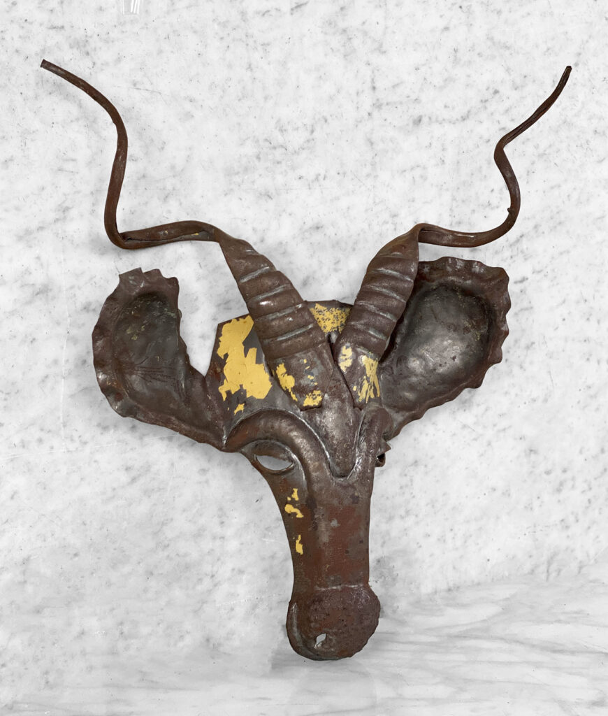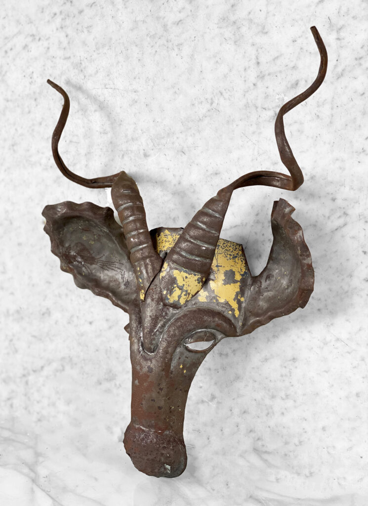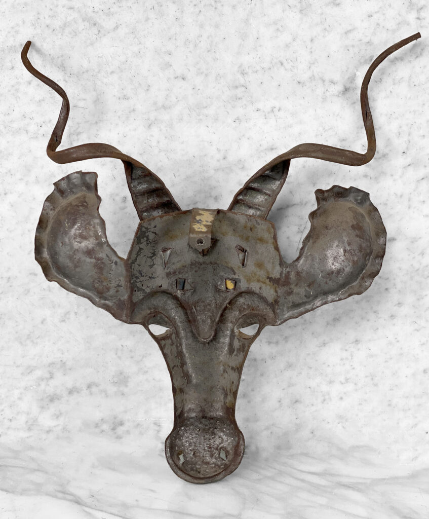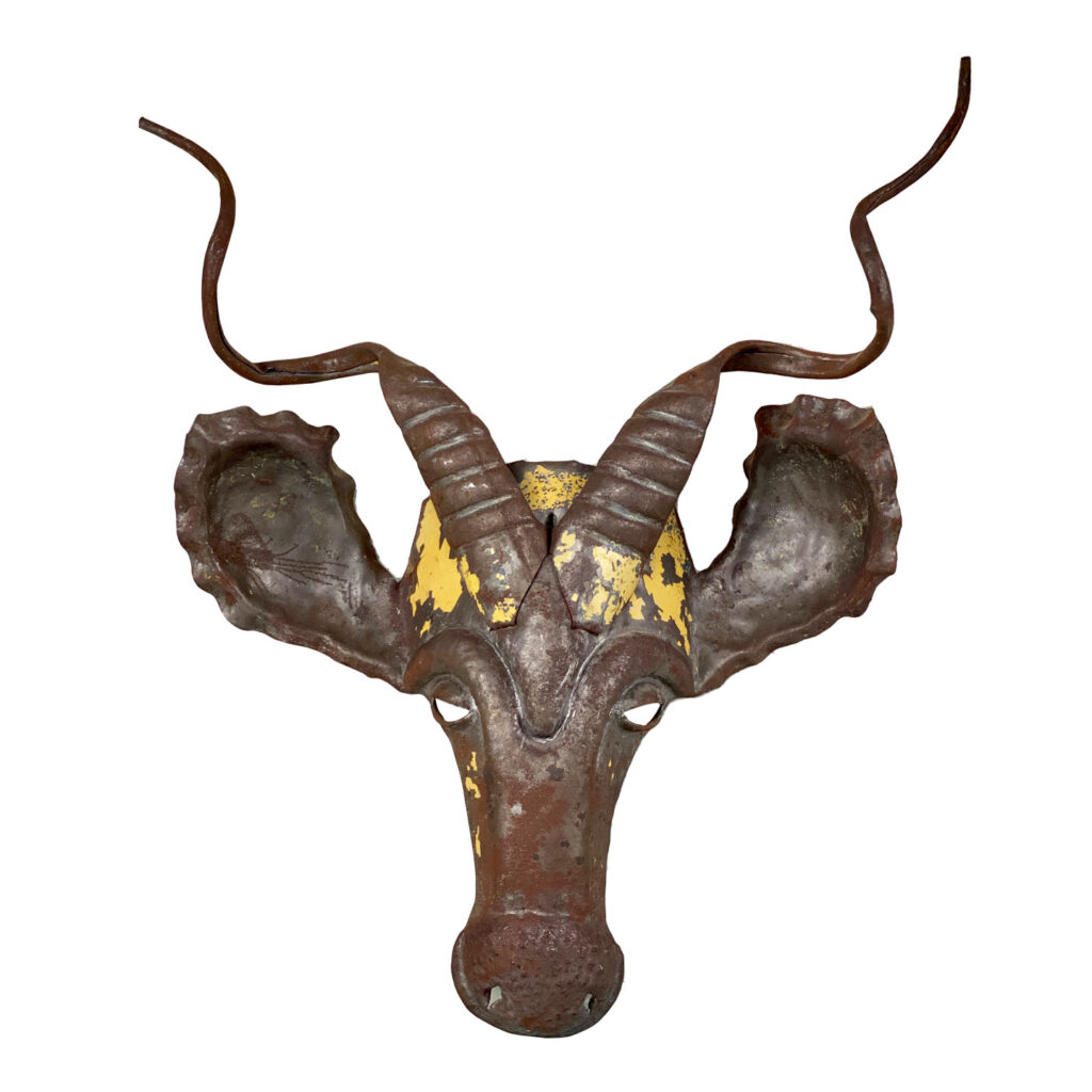 Industrial African Folk Art Kudu Wall Hanging Sculpture Mask, Zimbabwe, c. Late 20th Century