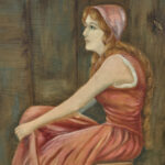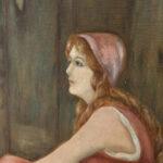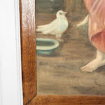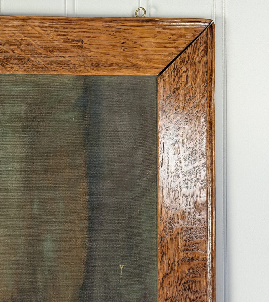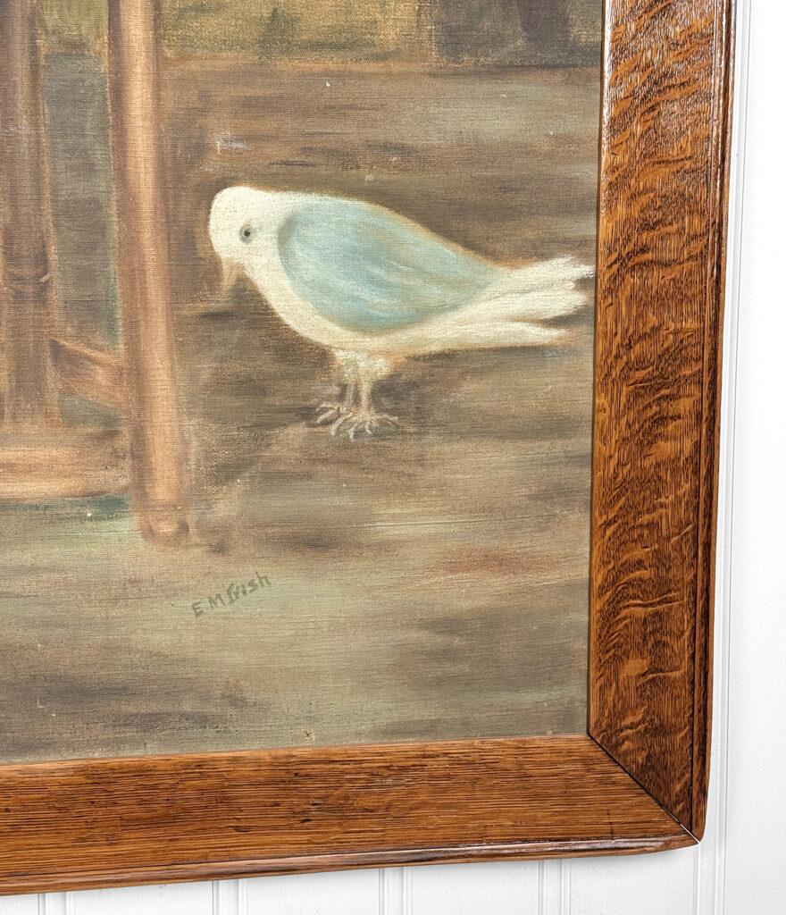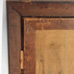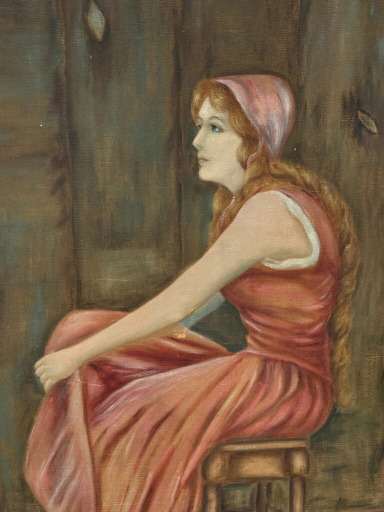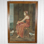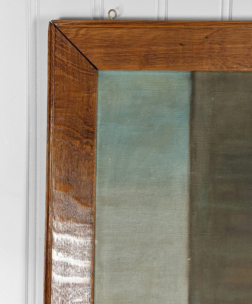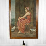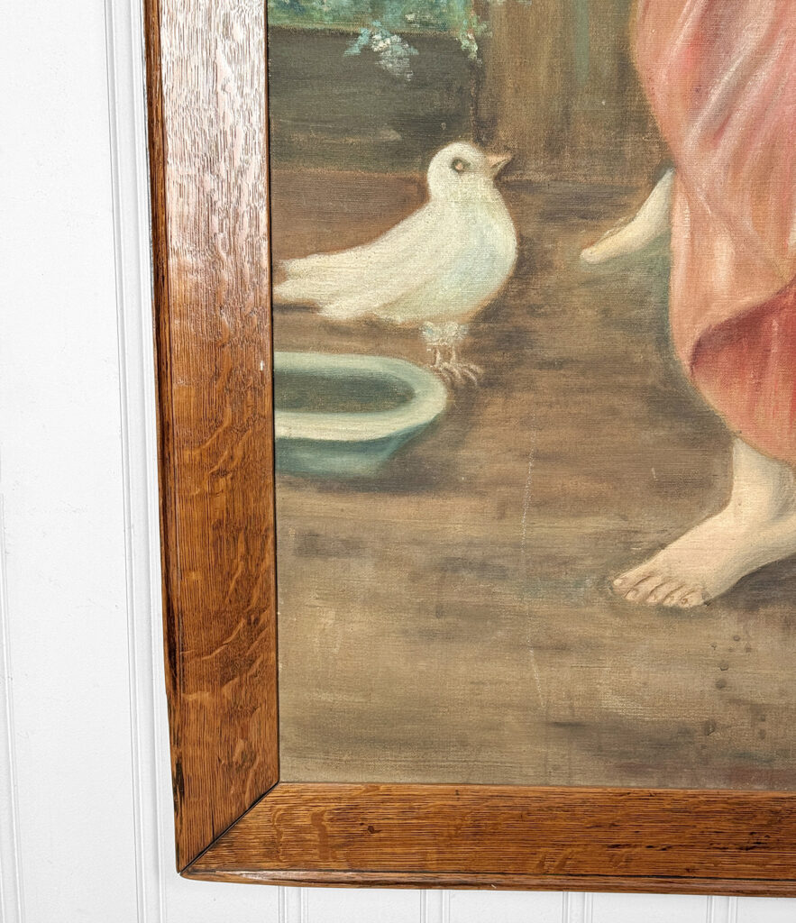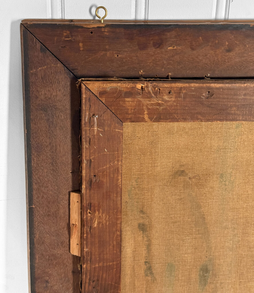 A patched repair is shown just below the women’s elbow. Smaller punctures in the canvas can be seen. These areas are circled in our photo gallery to reference.