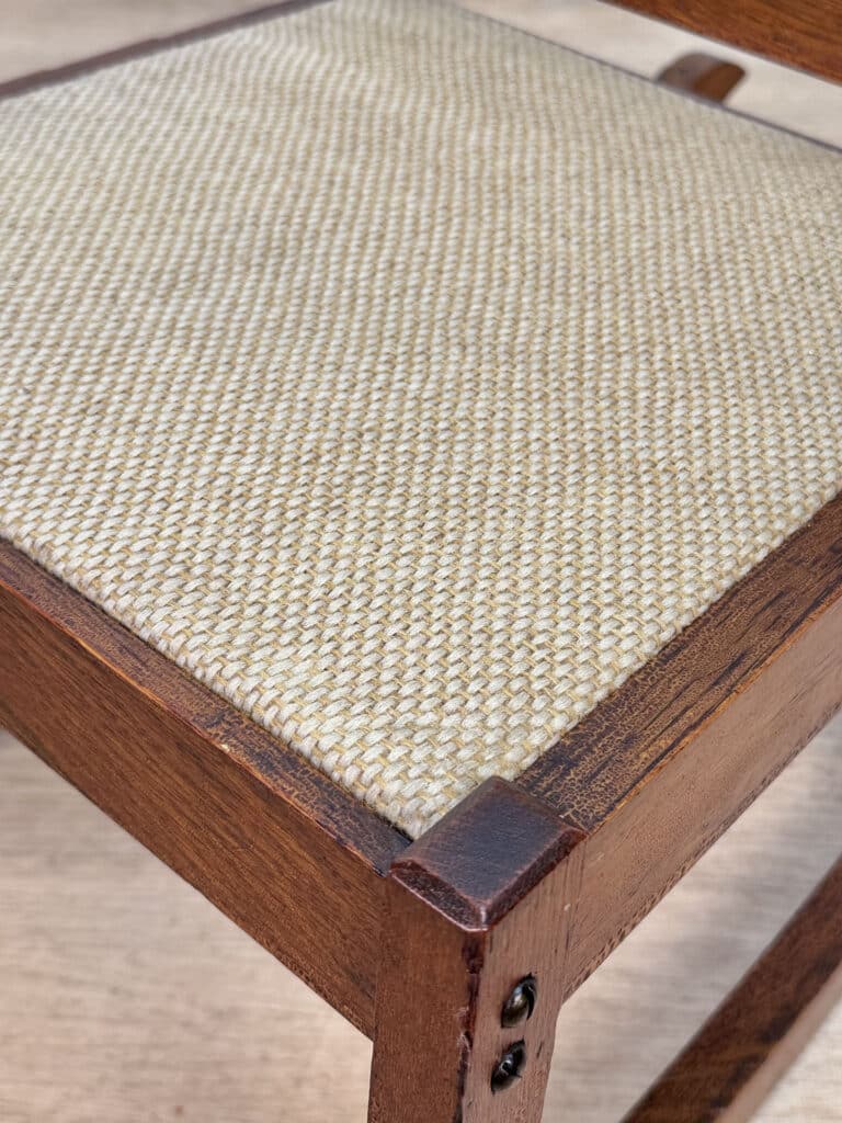 - Oatmeal Tweed Upholstered Seat, Likely Reupholstered During the Mid 20th Century
