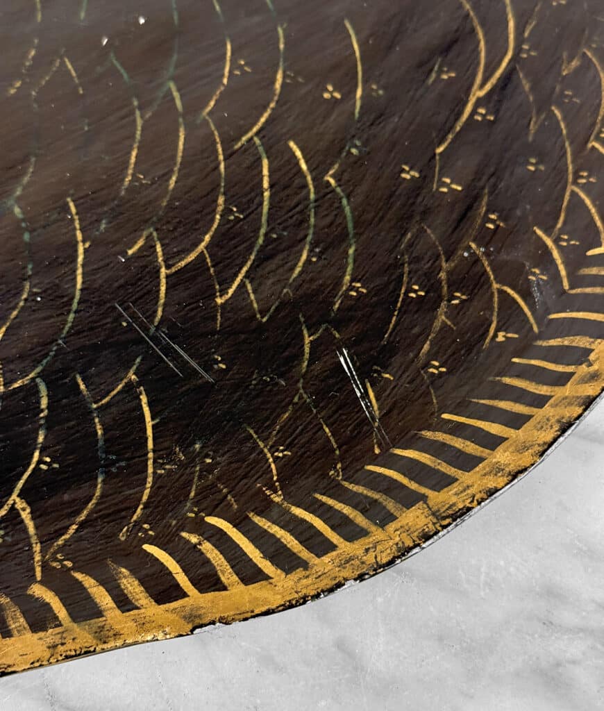 Overall good condition without any repairs shown. Roughened edges and surface scratches are shown from age – Really nice character!
