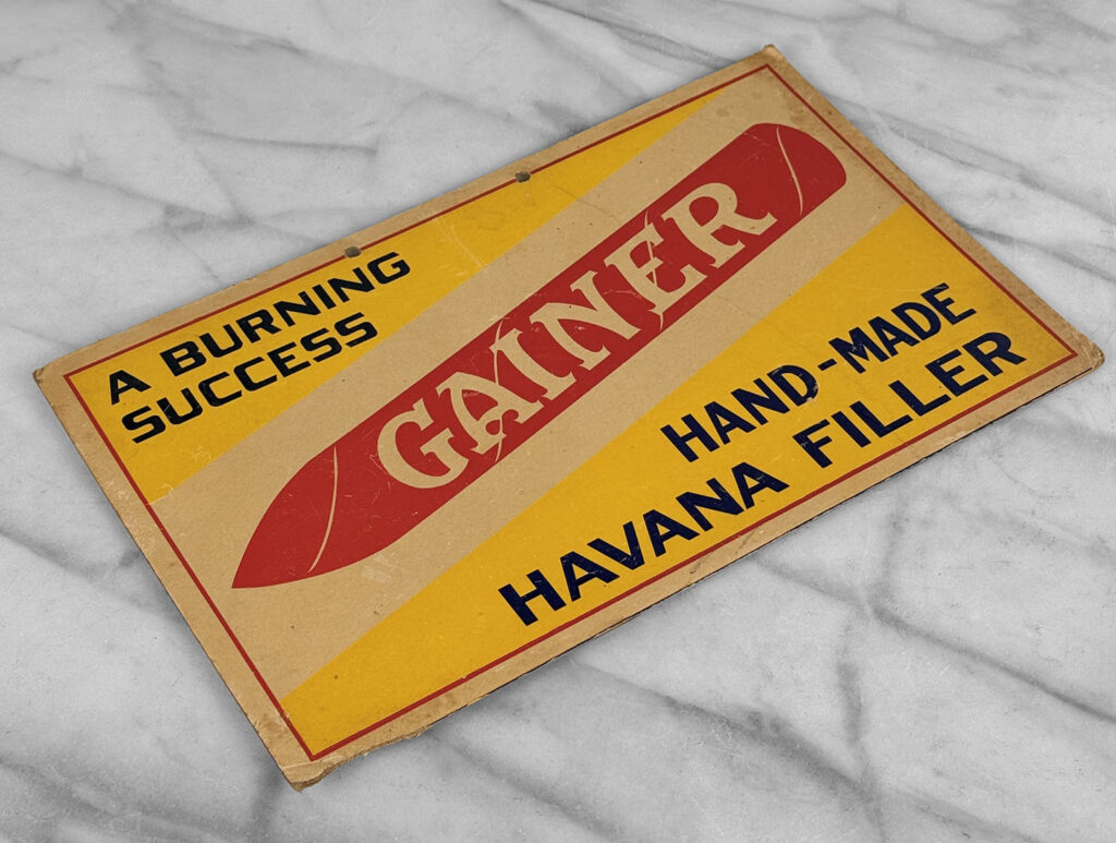 - Original General Store Hanging Advertisement for Gainer Cigars