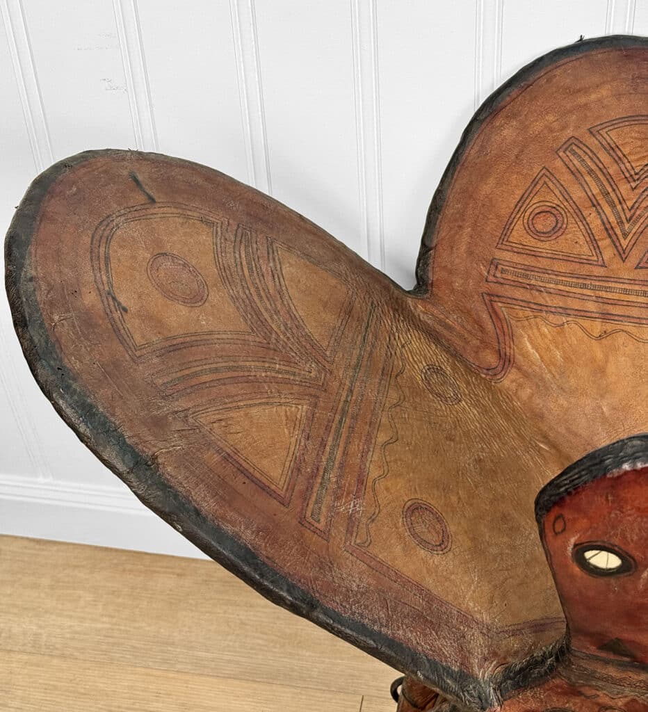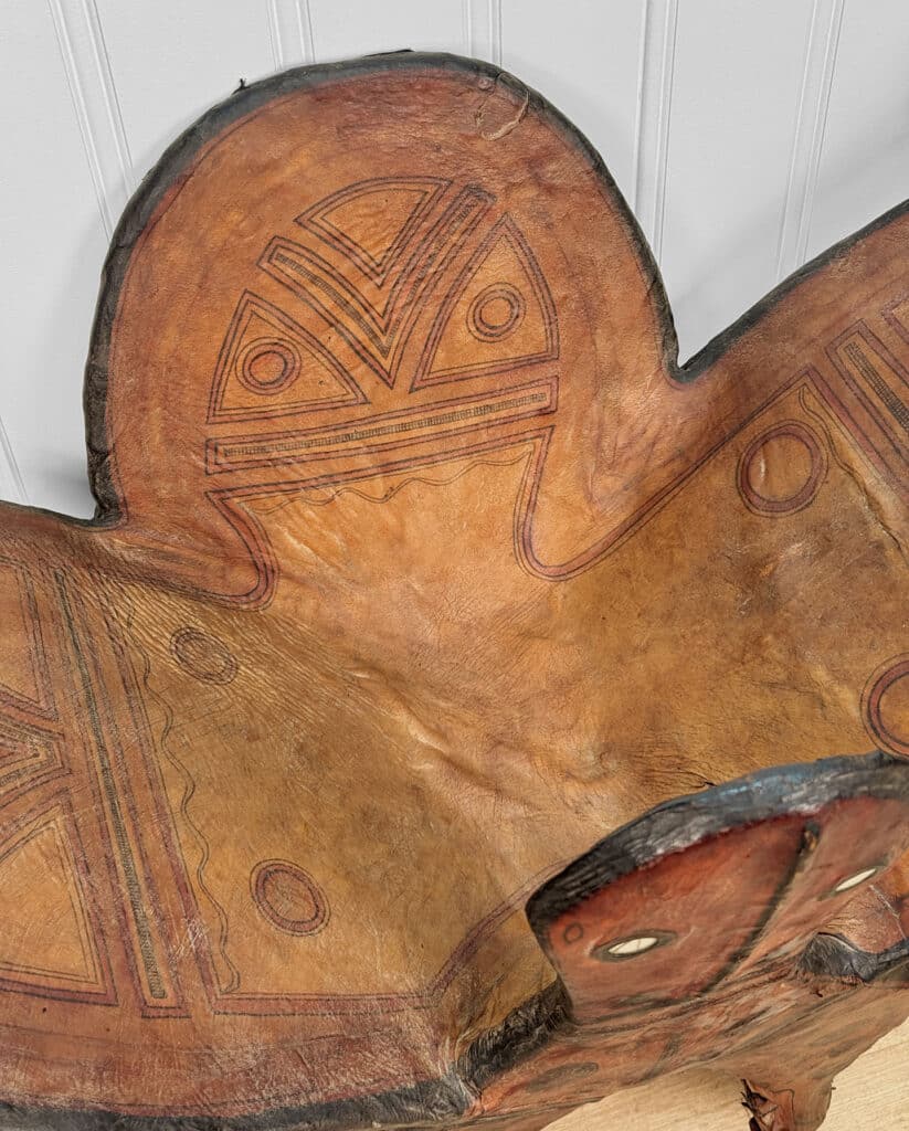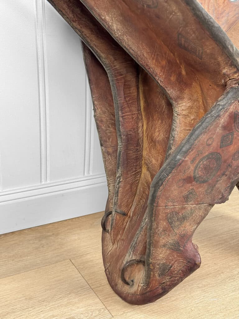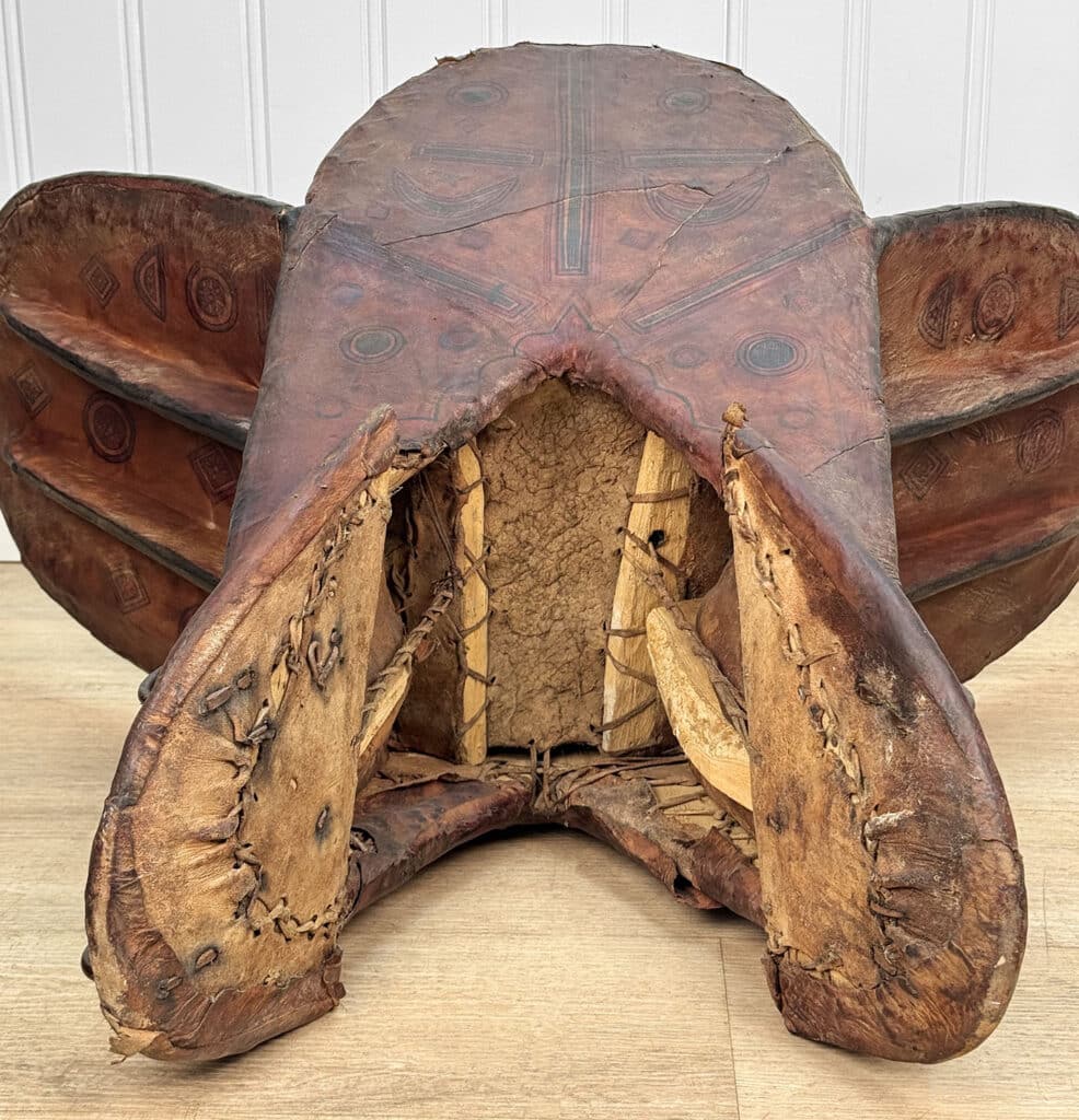 - Primitive Wooden Support Interior Covered in Rawhide & Leather Finished