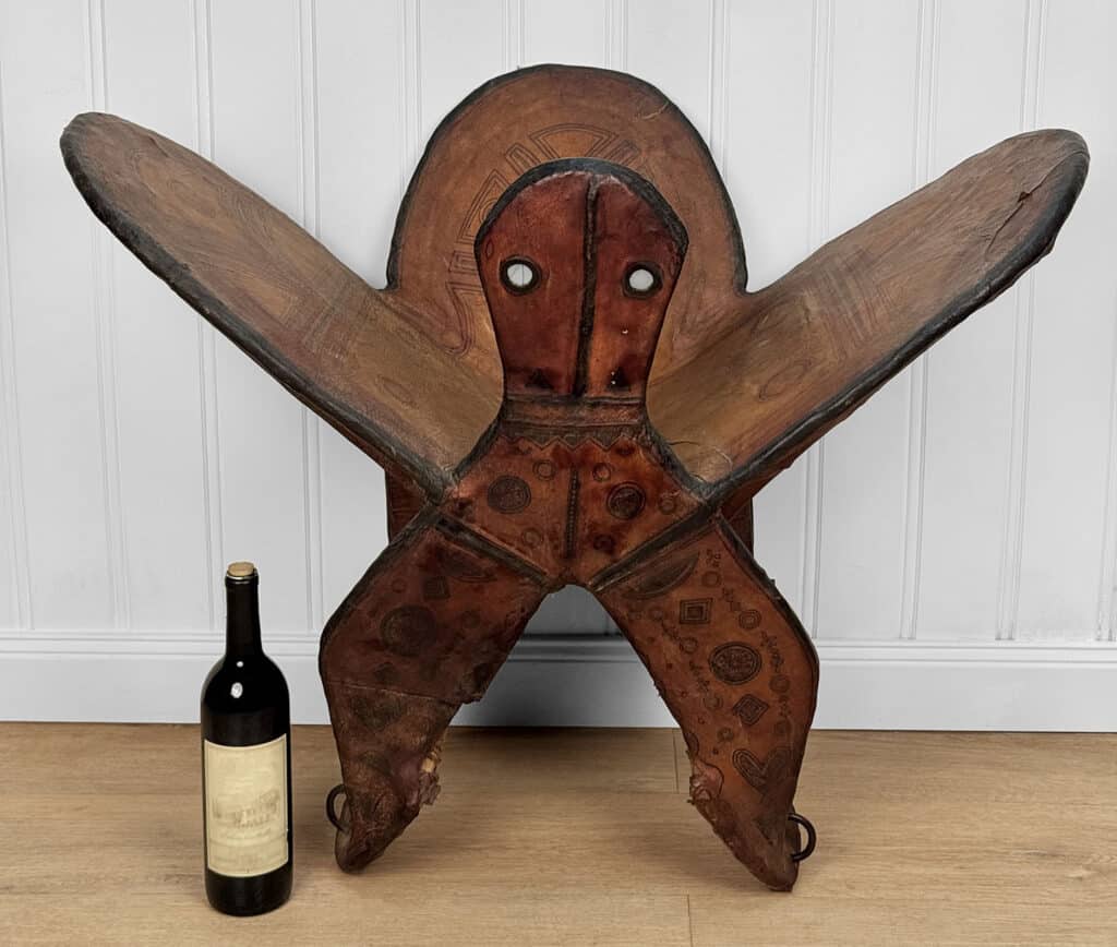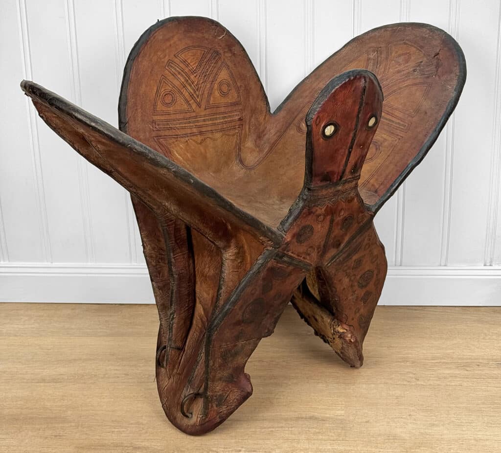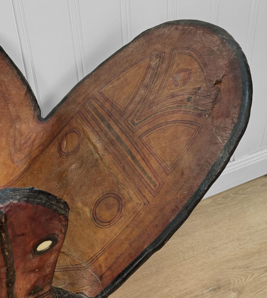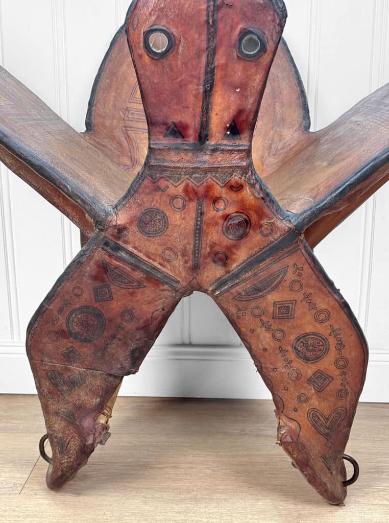 - Primitive Wooden Support Interior Covered in Rawhide & Leather Finished