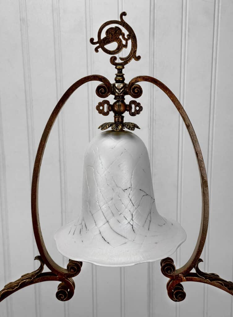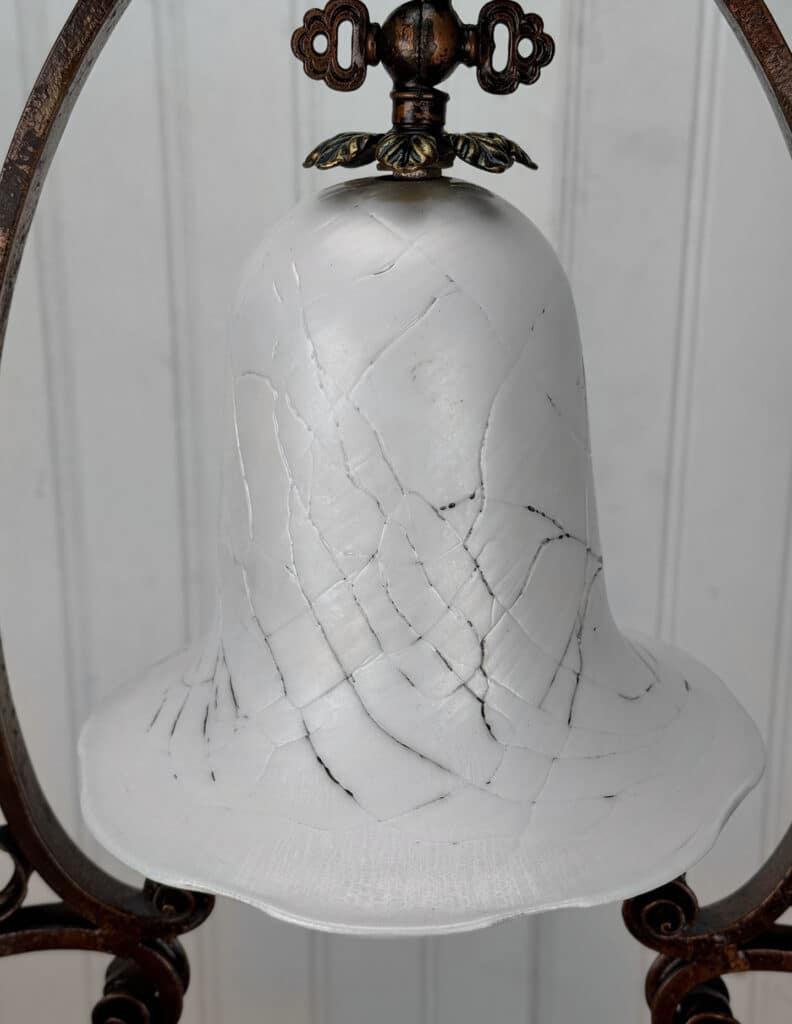 - Original White Crackle Steuben Glass Bell Shade with Adjustable Pivot