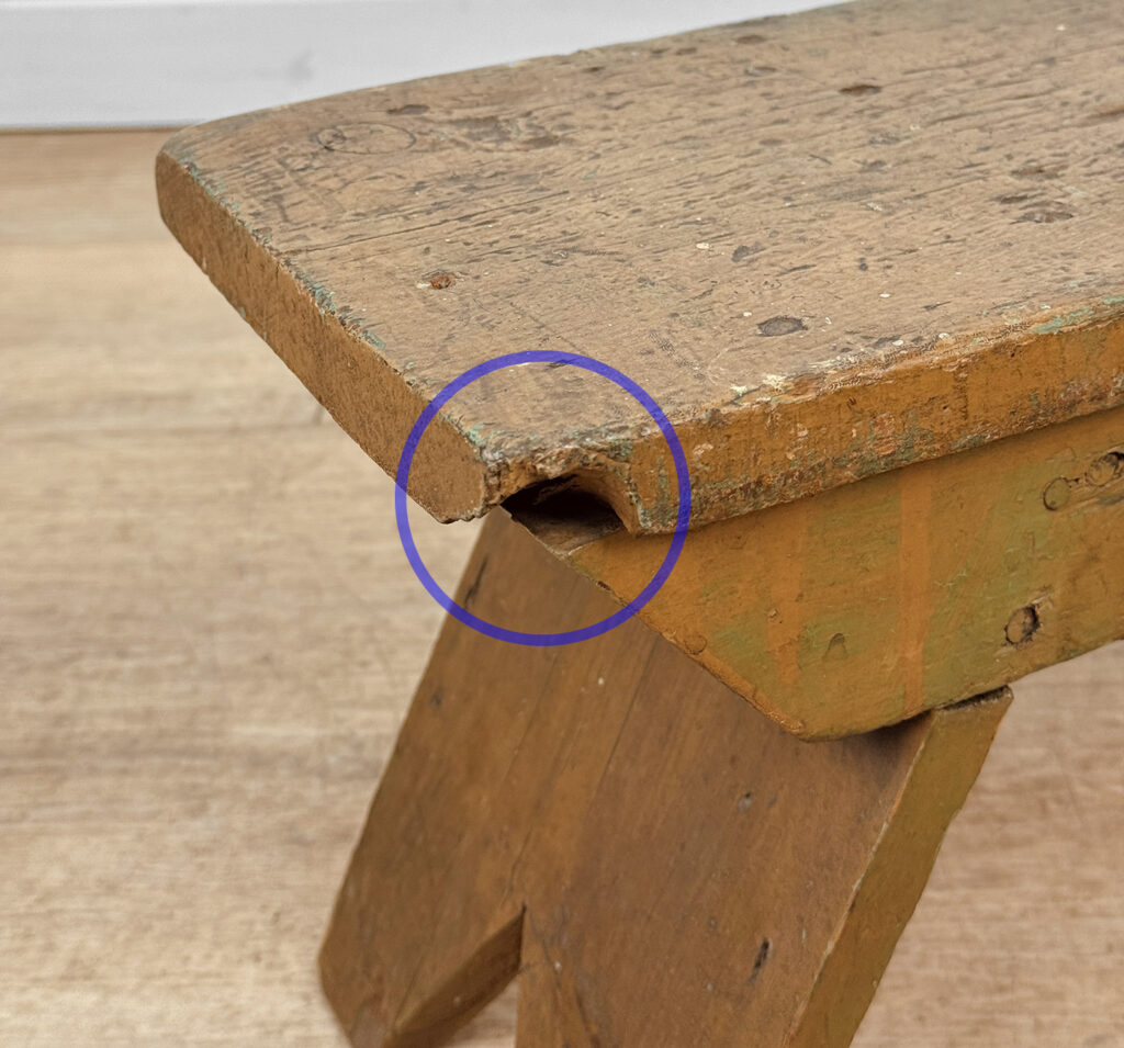 Stool is solid, sturdy and structurally sound. Wear and character is shown throughout.