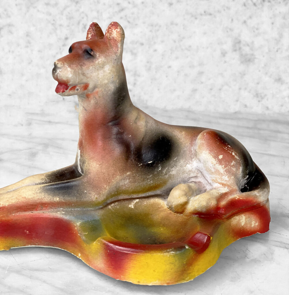 Antique Traditional Chalkware Great Dane Dog Ashtray, c.1930’s