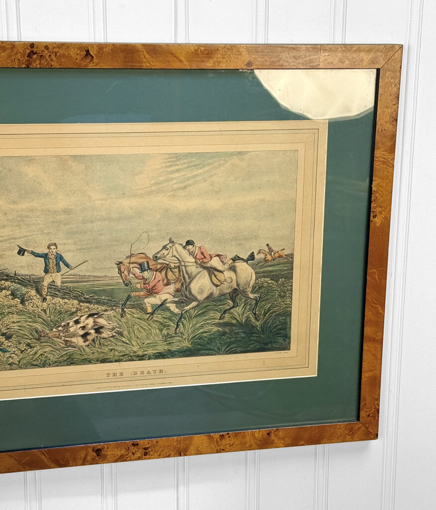 Antique Traditional Equestrian Fox Hunt “The Death” Framed Lithograph