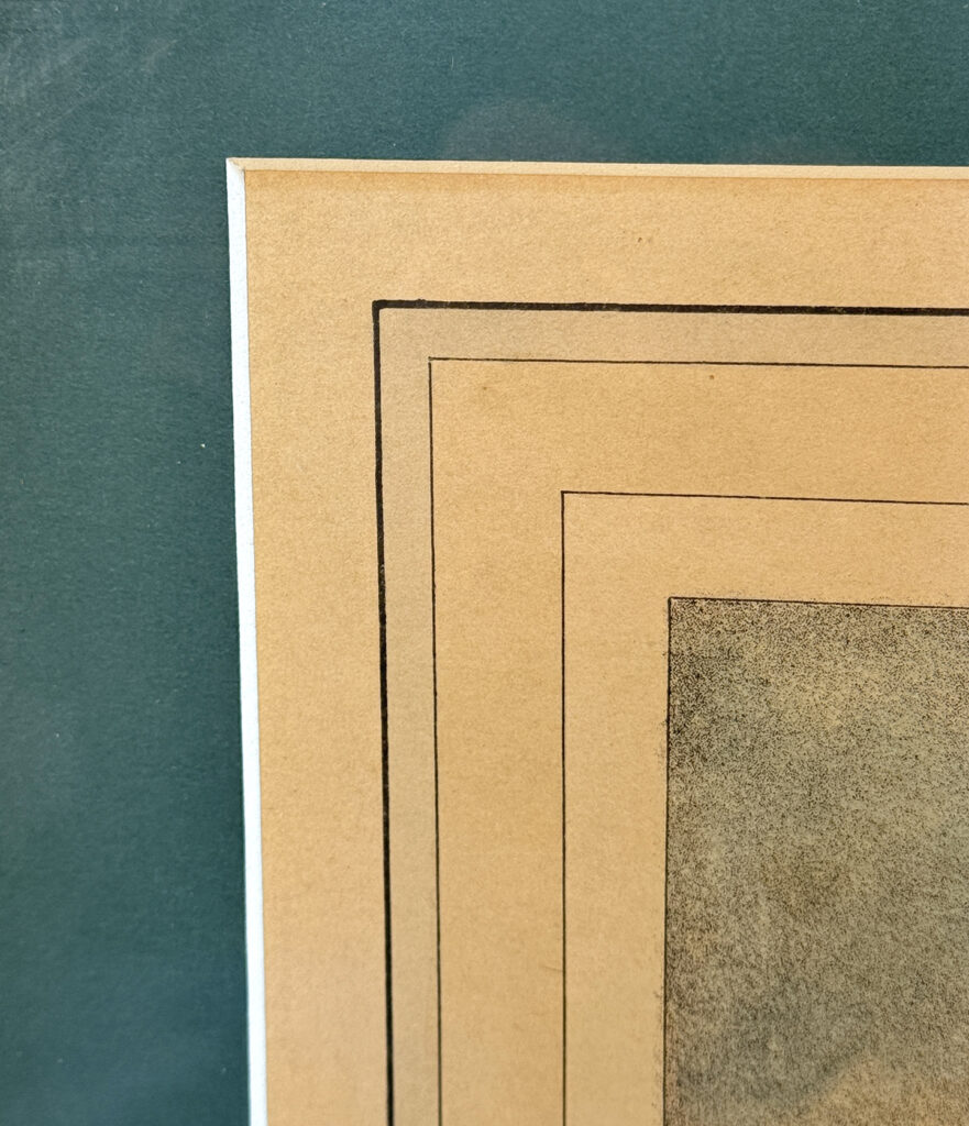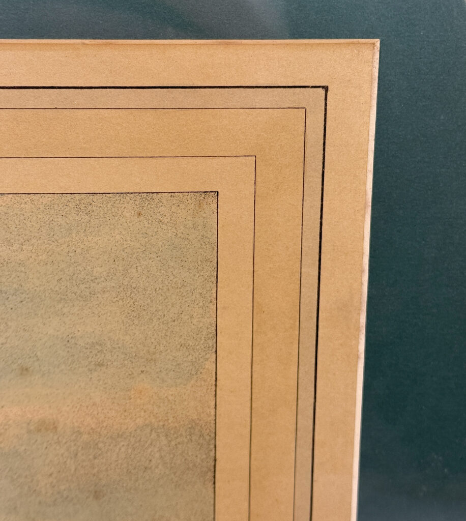 • Deep Teal Matting in a Birds Eye Maple Veneered Frame – Very Well Done