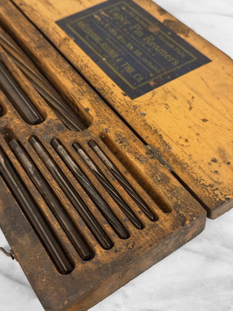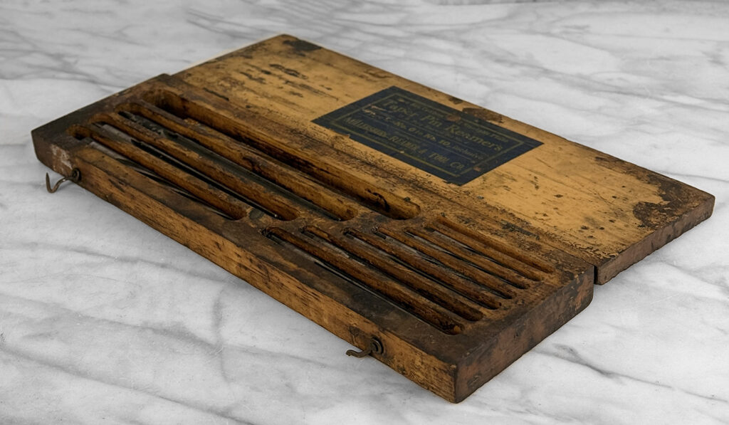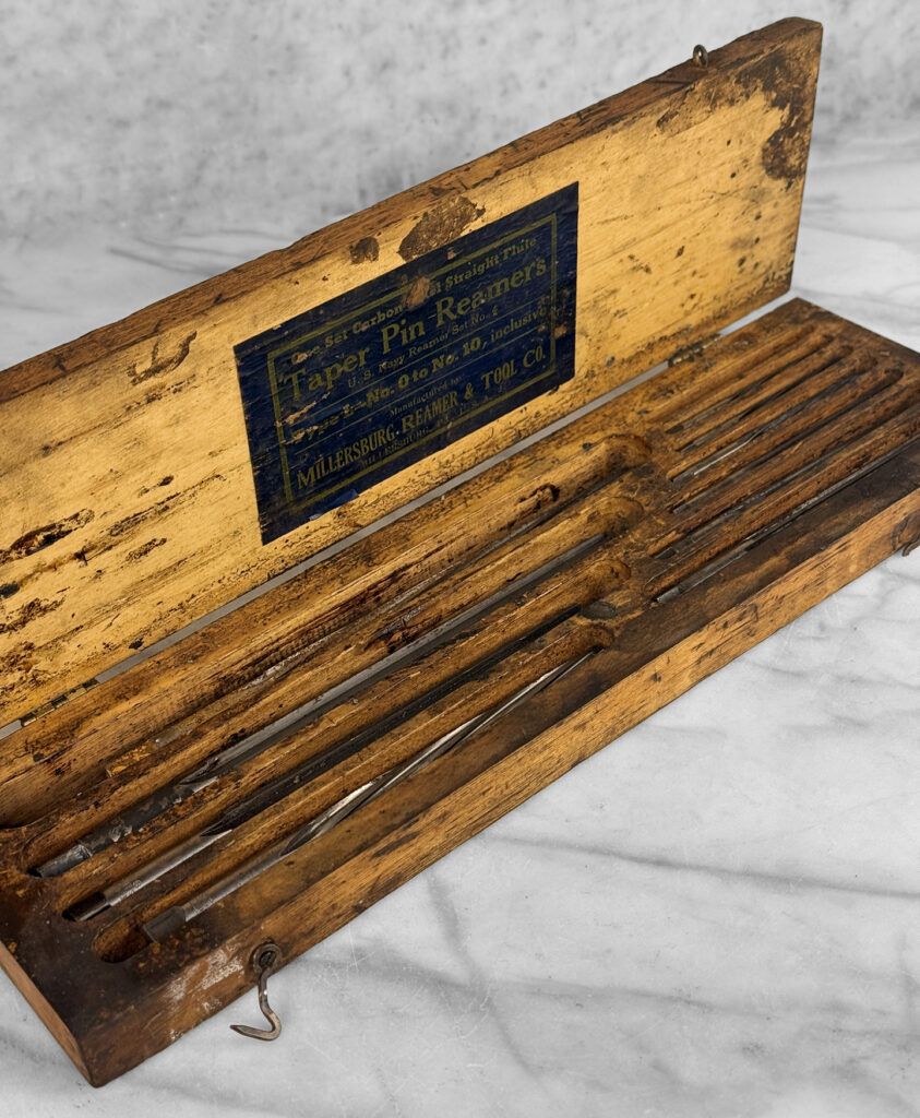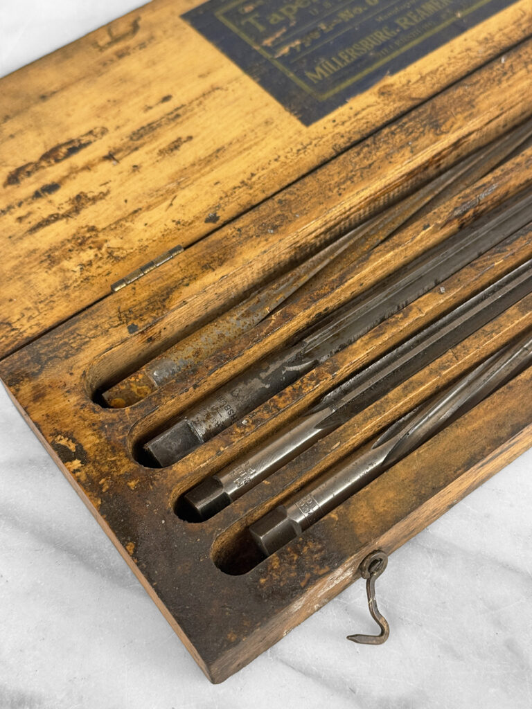Antique Traditional Wood Tool Storage Box with Millersburg Reamer Bits