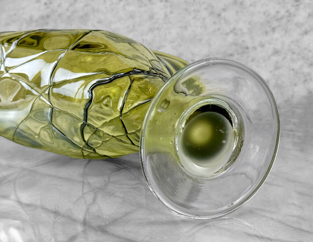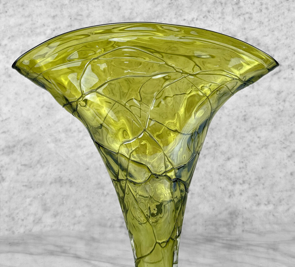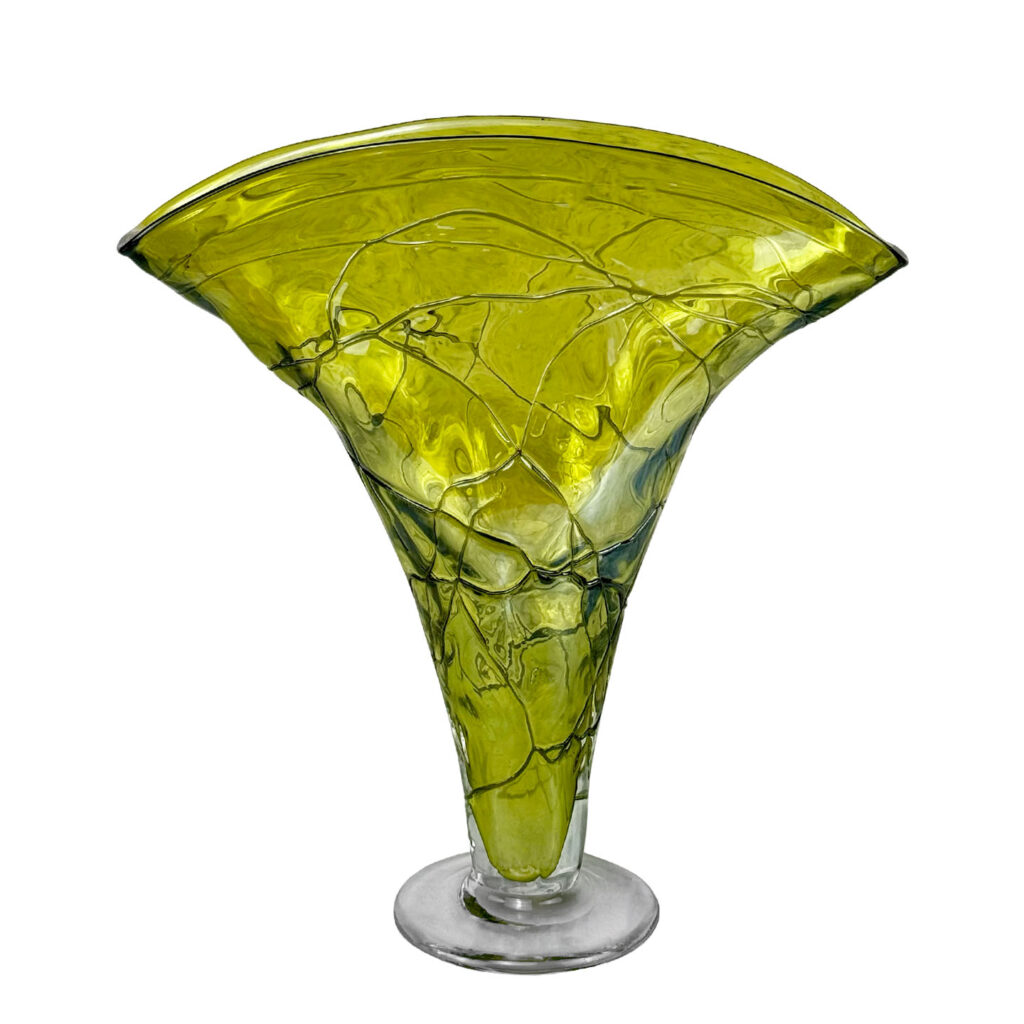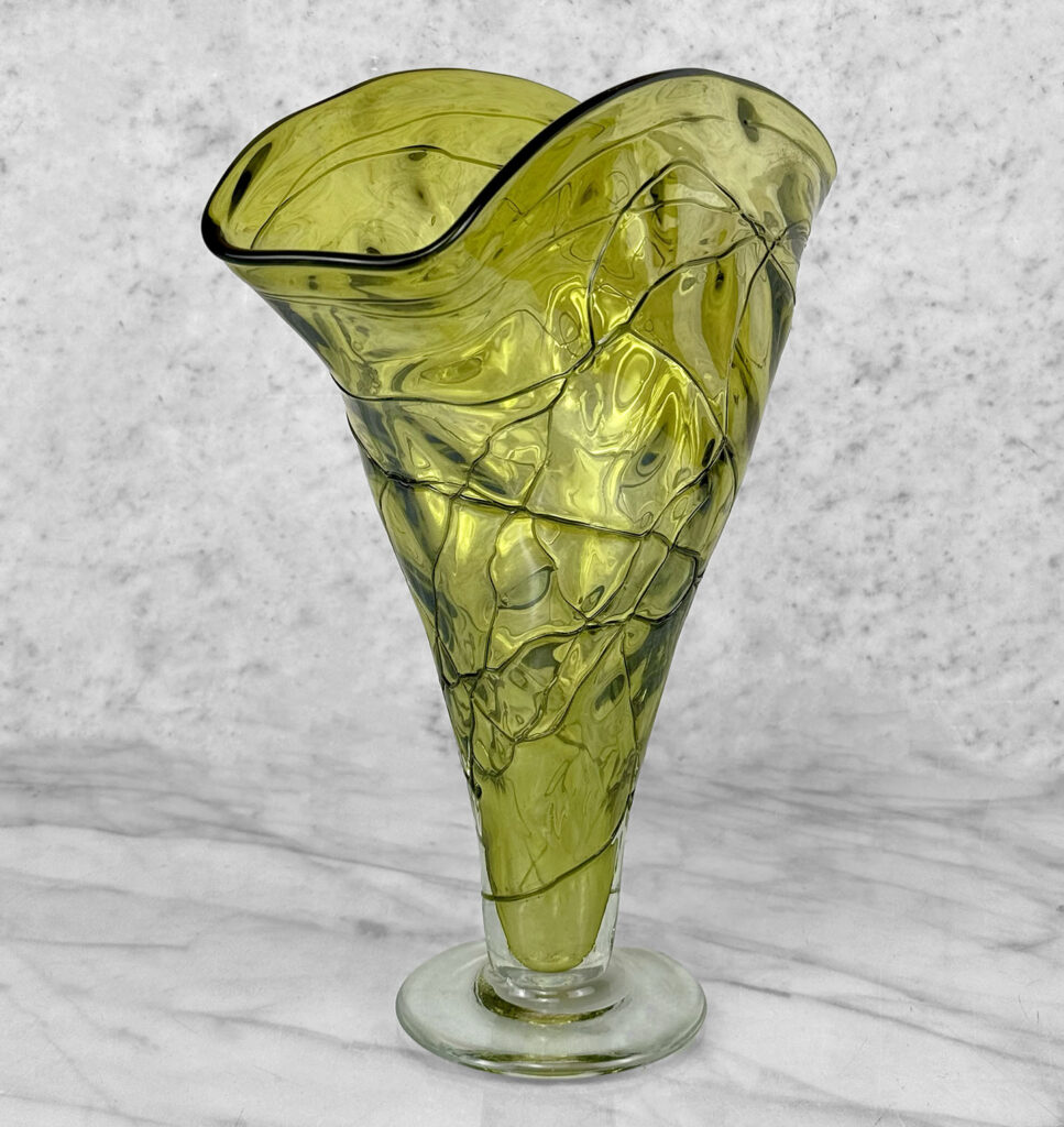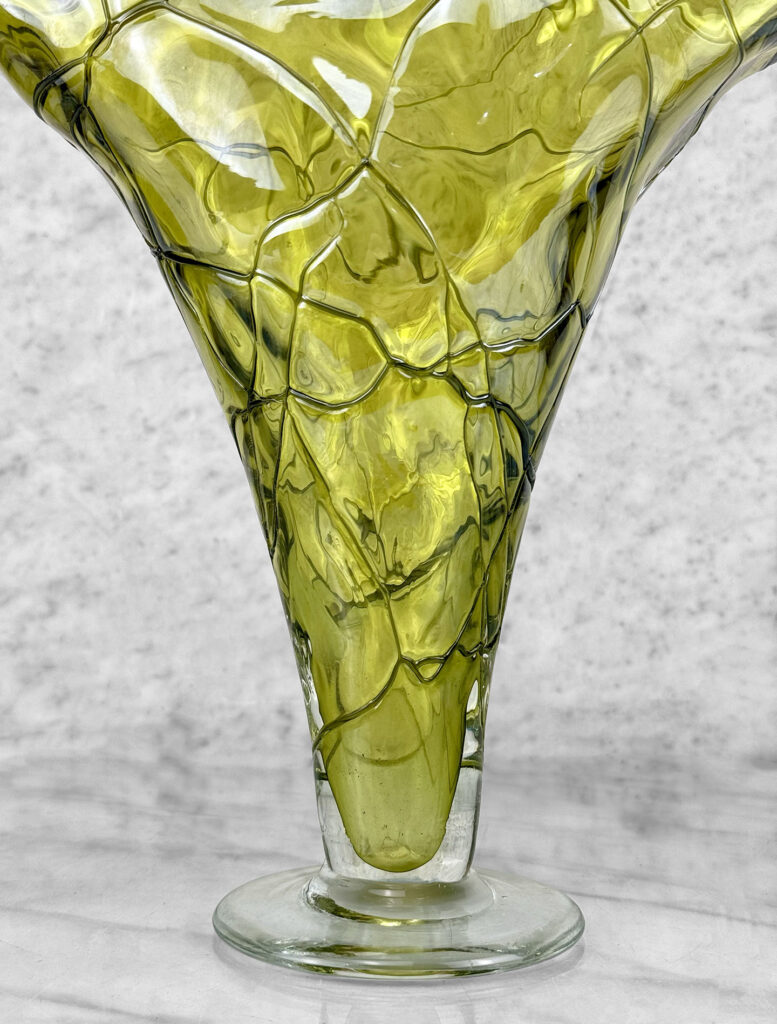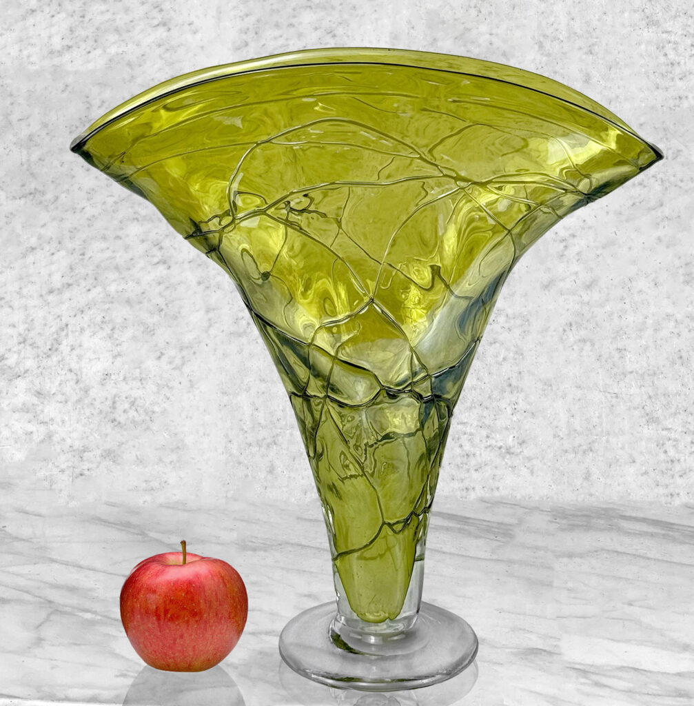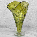 Mid-Century Art Deco Green Art Glass Flared Stingray Fan Vase