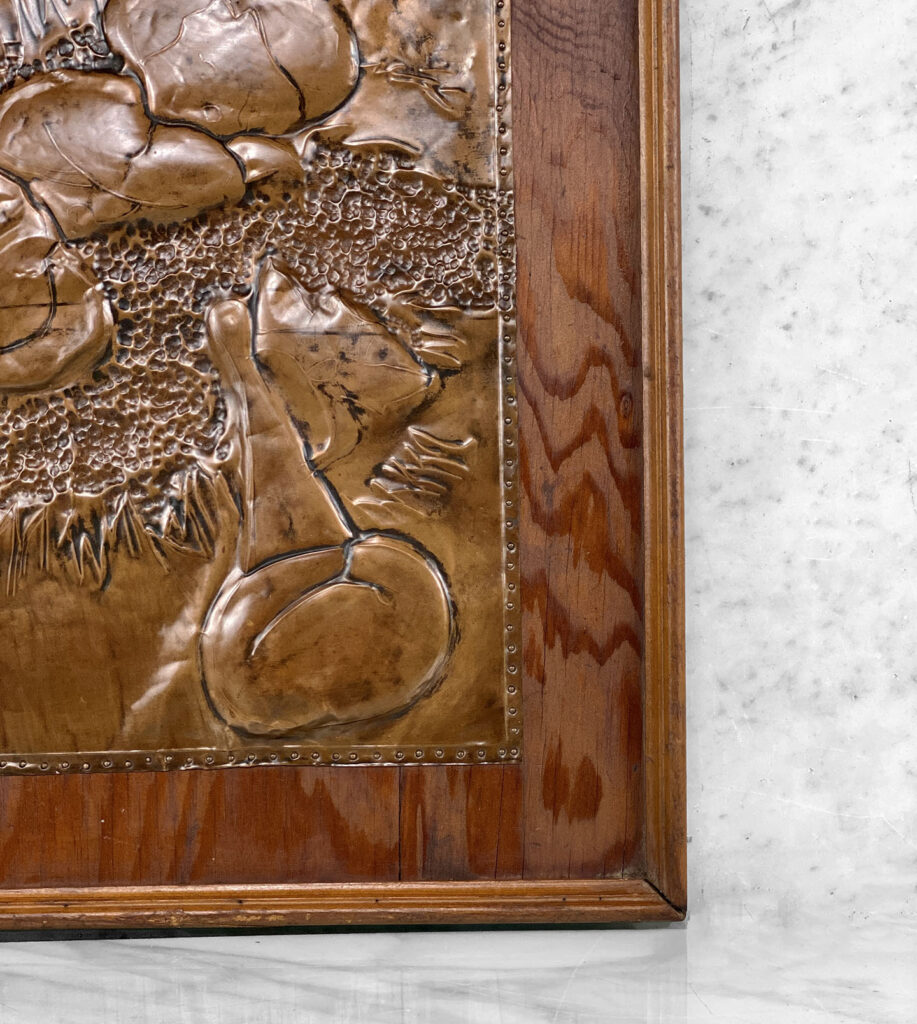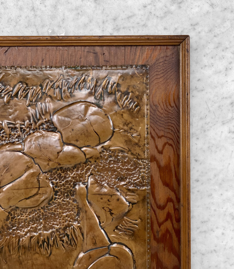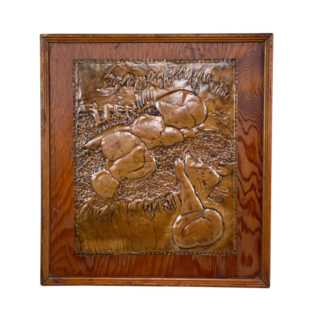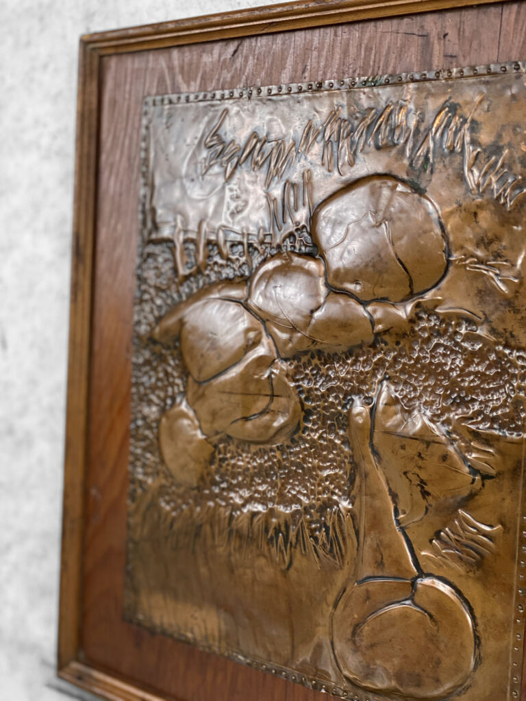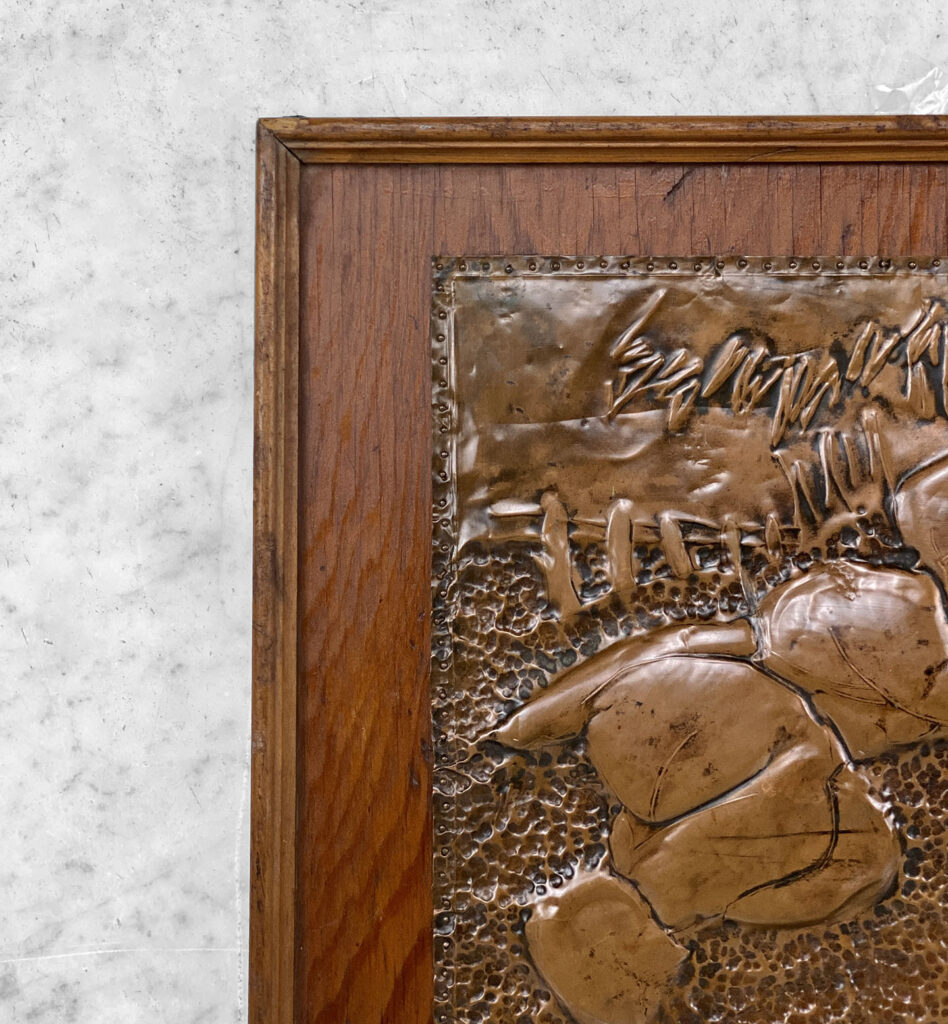 This Copper Metal Art is in overall good condition. Mild tarnishing to the brass can be seen from age.