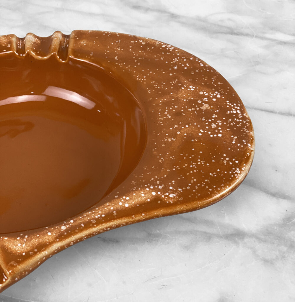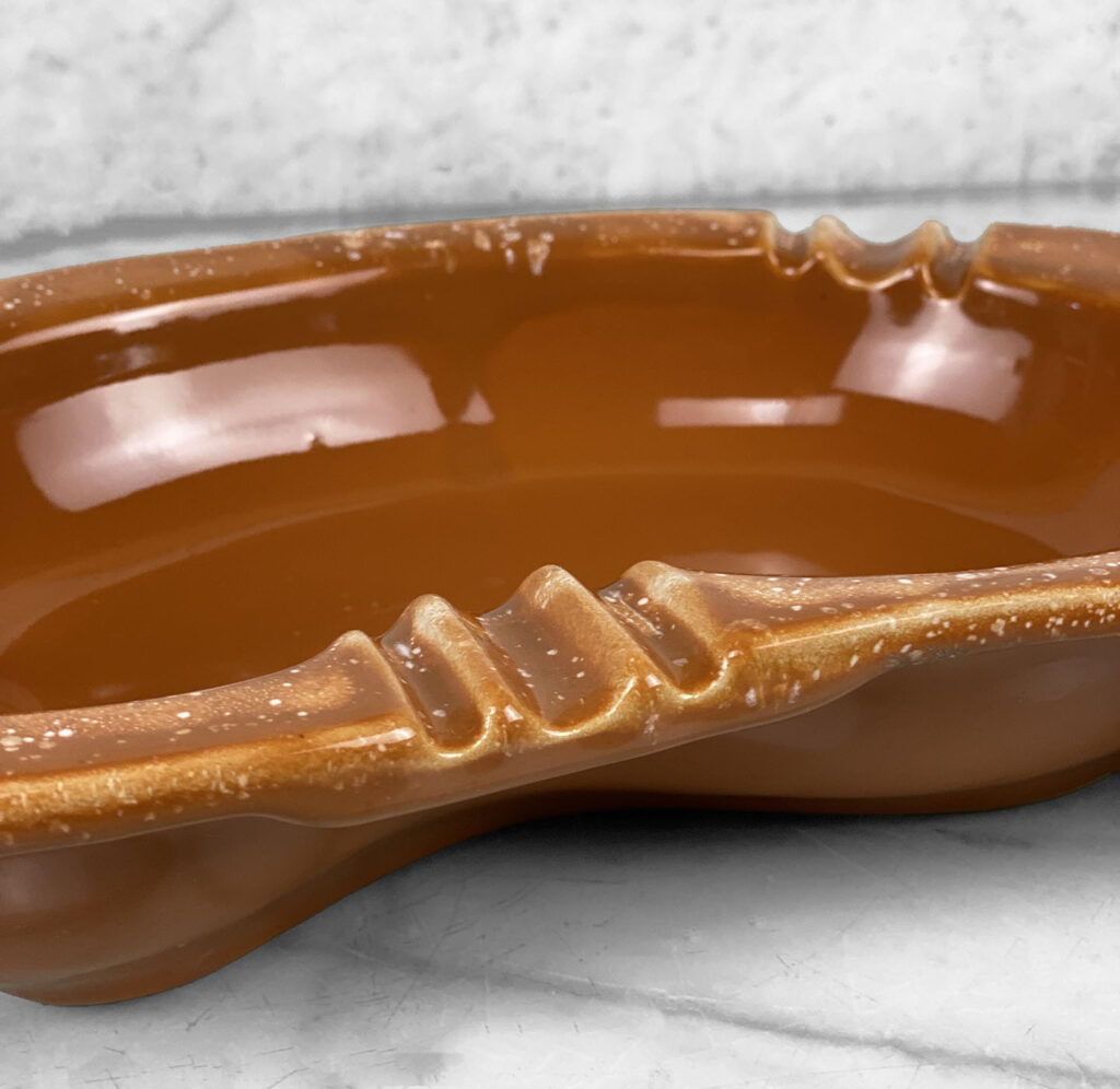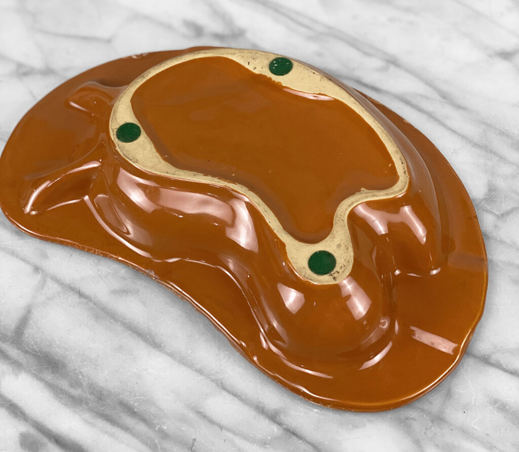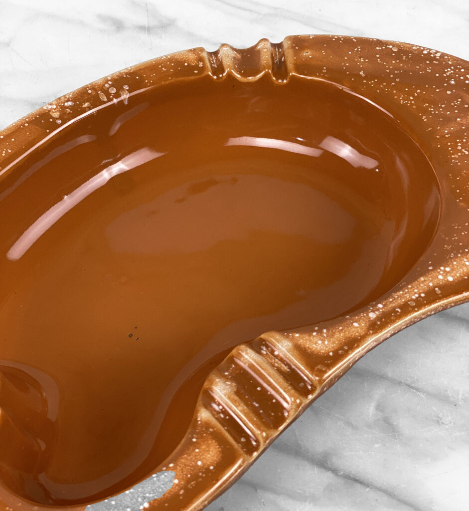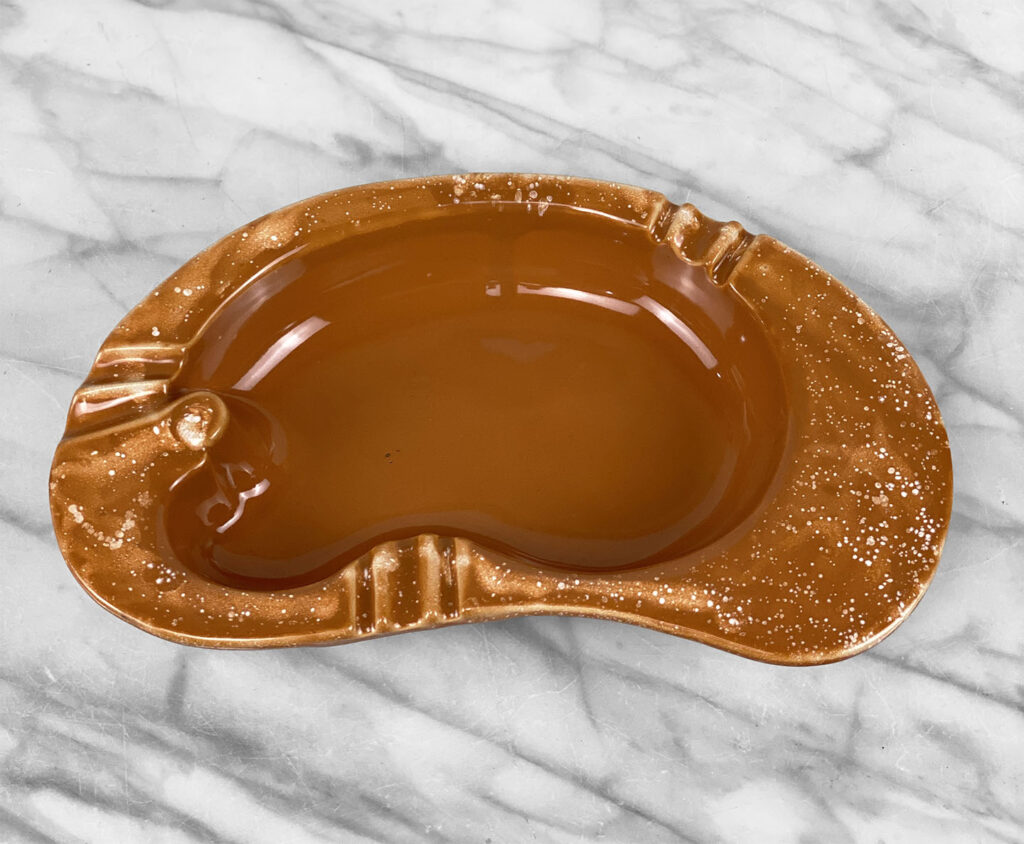 This Atomic Kidney Centerpiece Ashtray is in overall good condition without any cracks, chips or repairs shown.