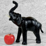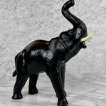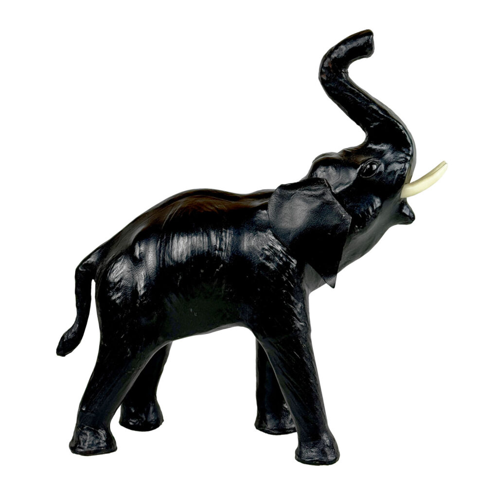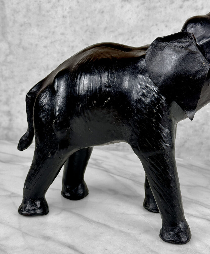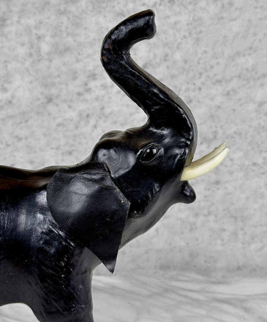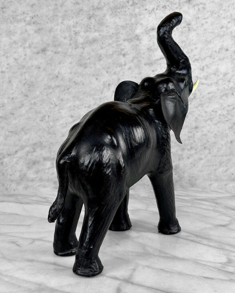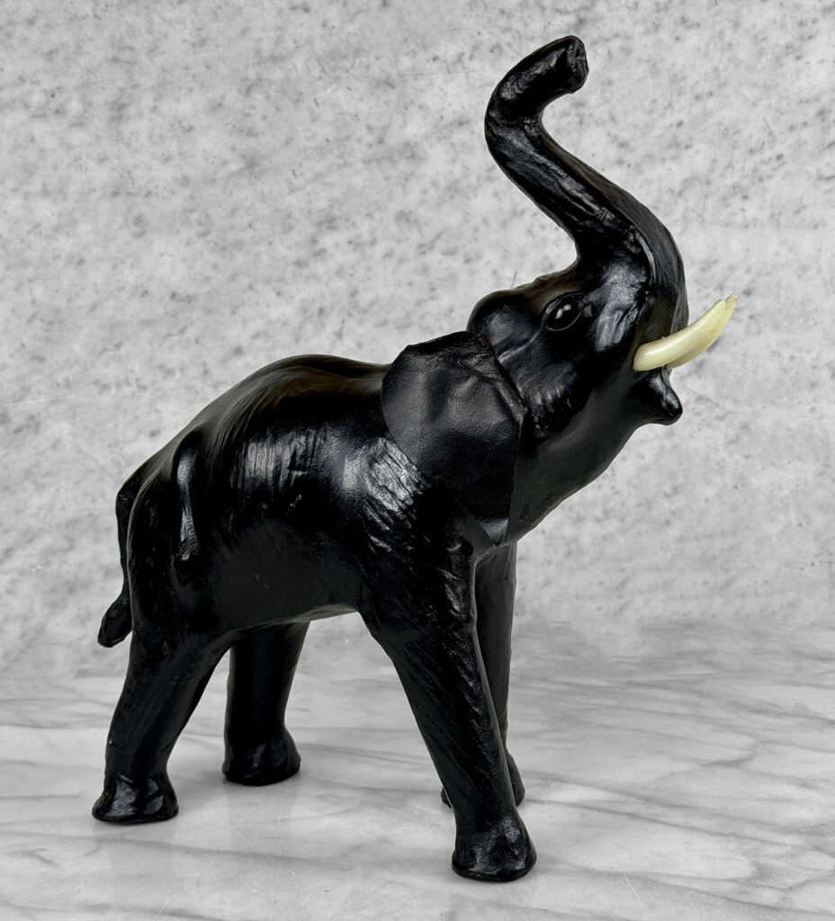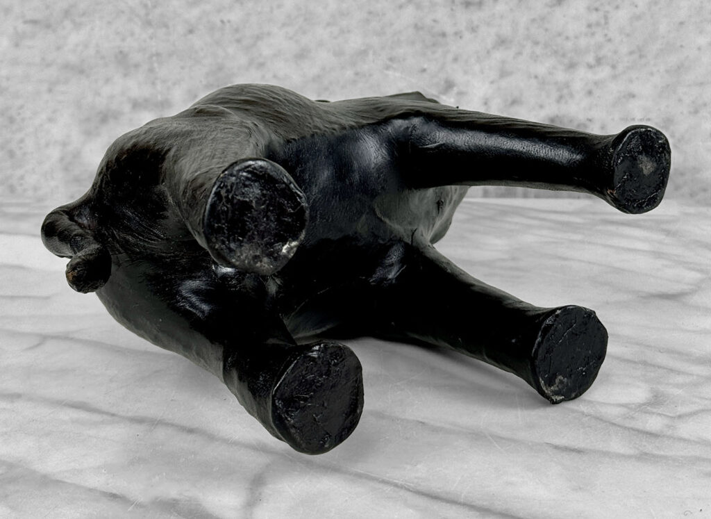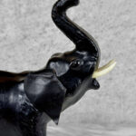 Vintage Black Leather African Elephant Figural Sculpture, c. Late 20th Century