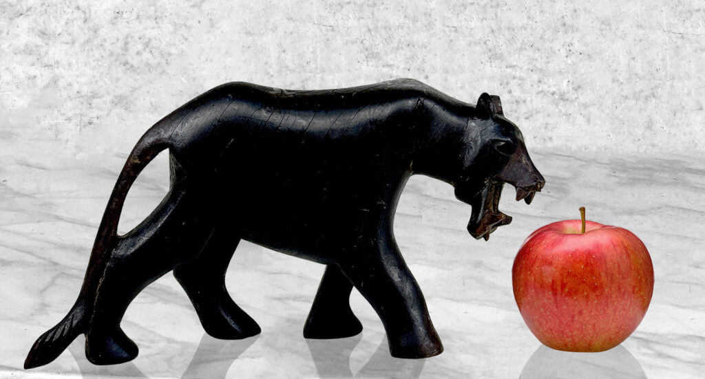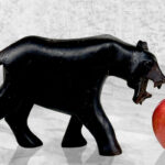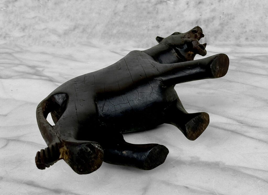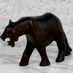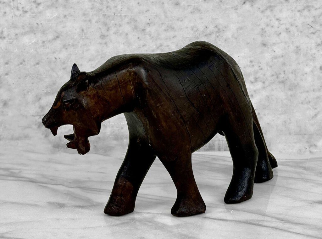 This Wood Carved Panther Sculpture is in overall good condition. The wood shows age and great character, mild surface scratches, finish blemishes and natural splitting to the wood can be seen. There aren’t any repairs shown.