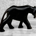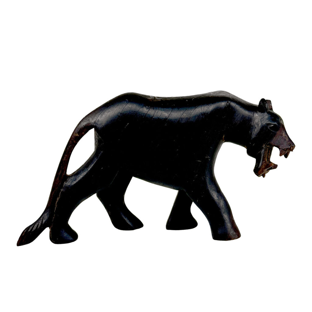 Vintage Black Panther Wood Carved Sculpture, c. Mid 20th Century