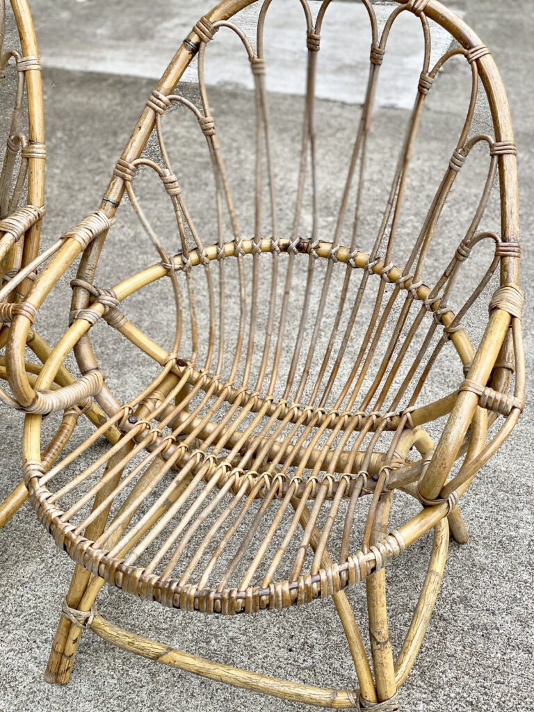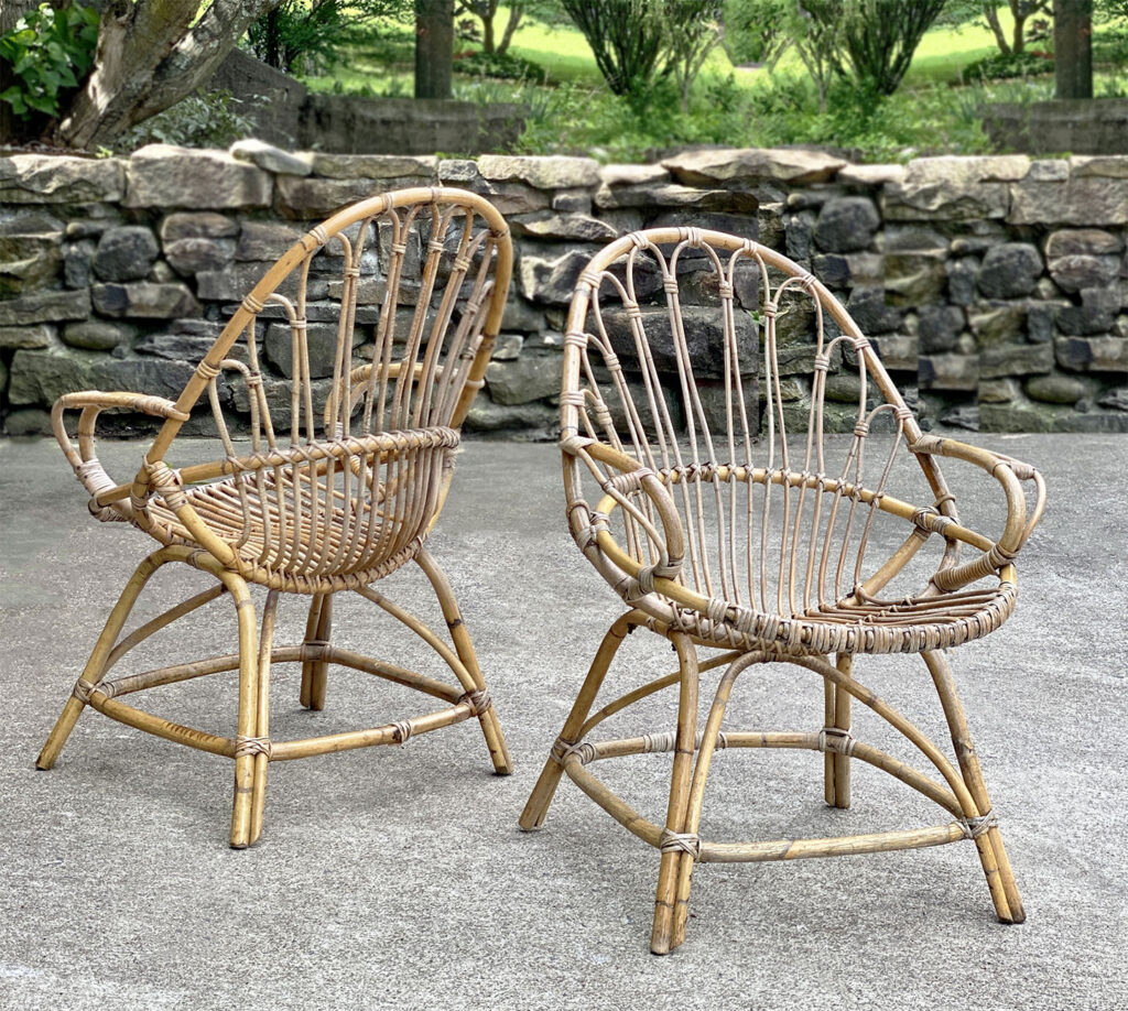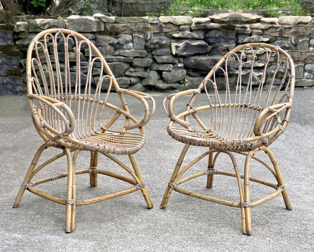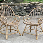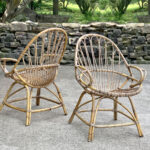 Vintage Boho Coastal Rattan Sculptural Arm Chairs – A Pair