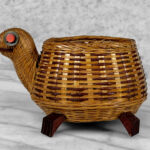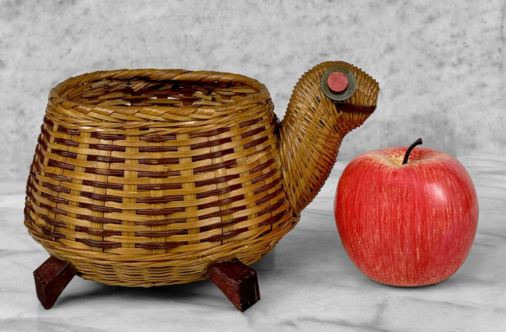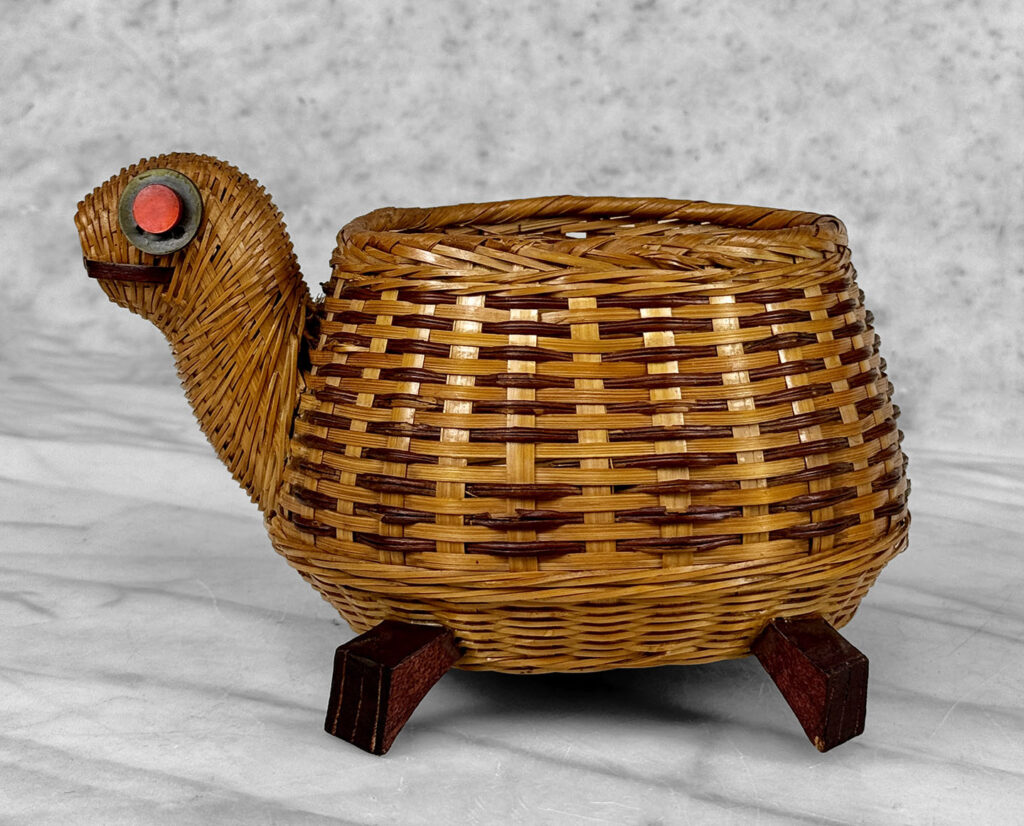 Vintage Boho Natural Wicker Turtle Planter, c.1970’s