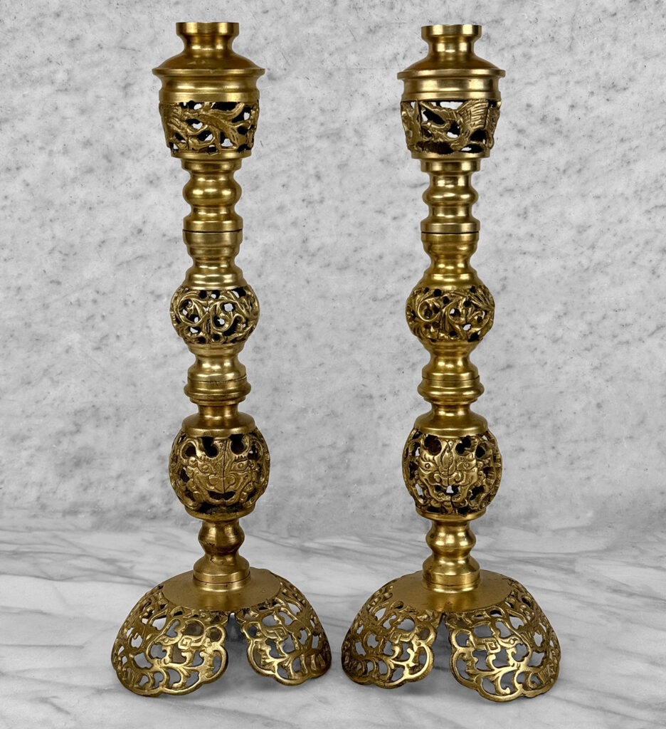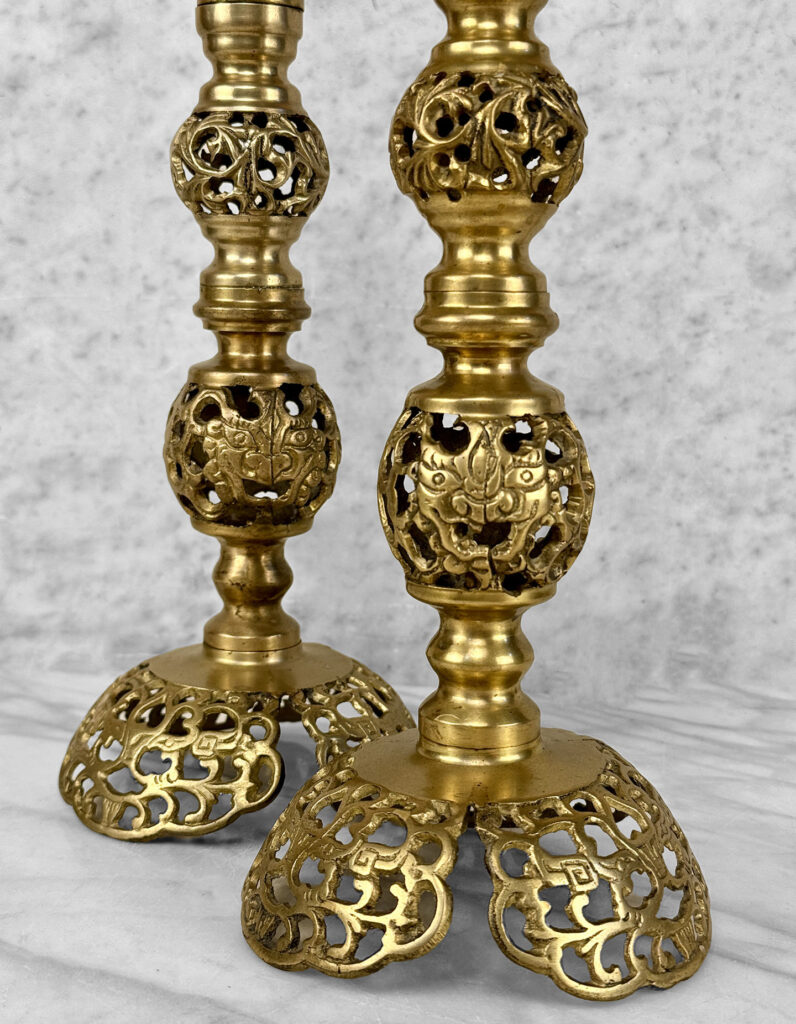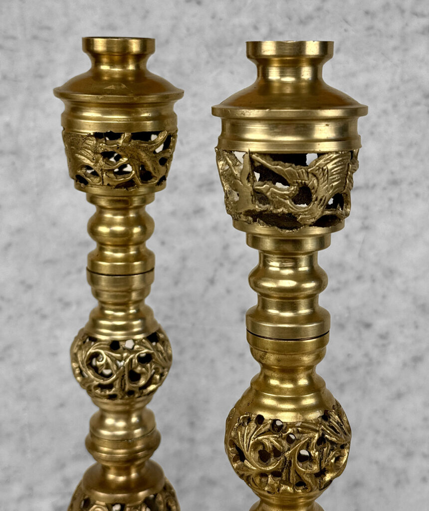 Mild tarnishing and patina to the brass can be seen from age, they show very nice character and look lovely while displayed. There aren’t any repairs shown or notable areas of wear.