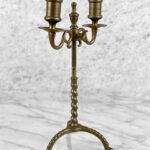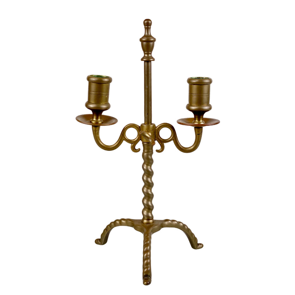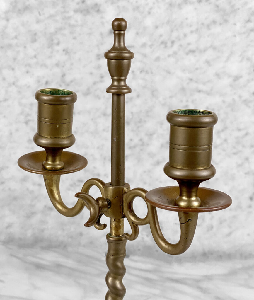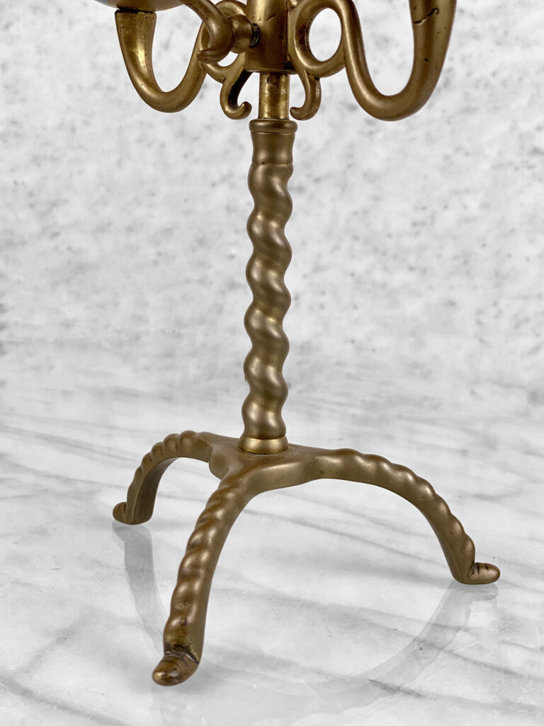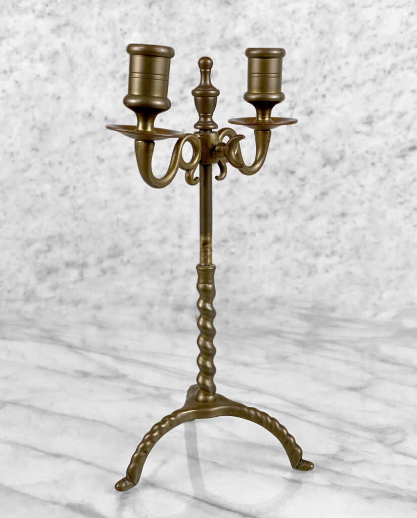 Vintage Traditional Brass Twist Motif Double Candlestick Holder, c. Mid 20th Century