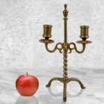 This Traditional Brass Candlestick Holder is in overall good condition. The brass is nicely aged, showing only mild tarnishing from age – It’s unpolished.