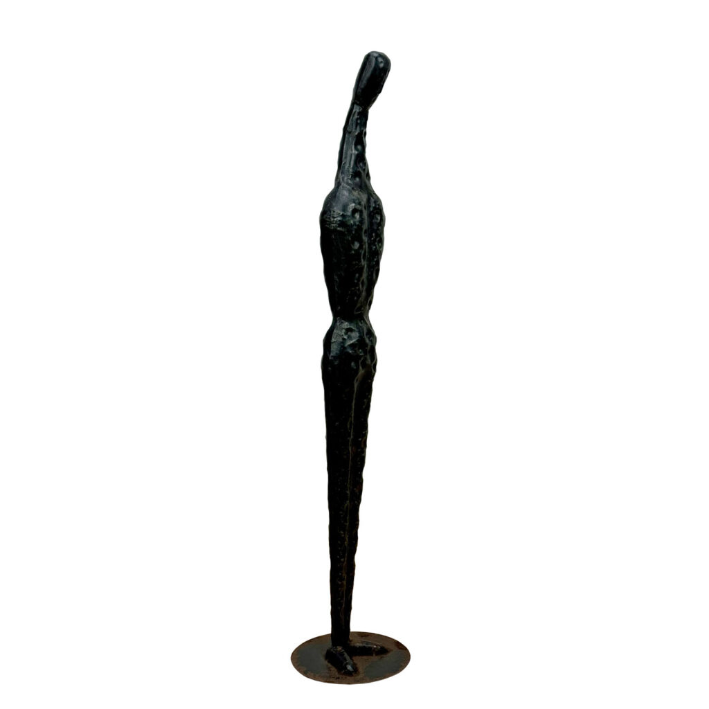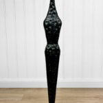 • Hammered Tin Metal Sculpture with an Original Black Lacquered Finish