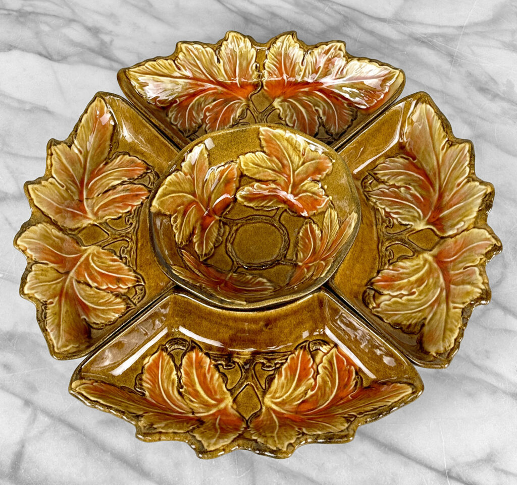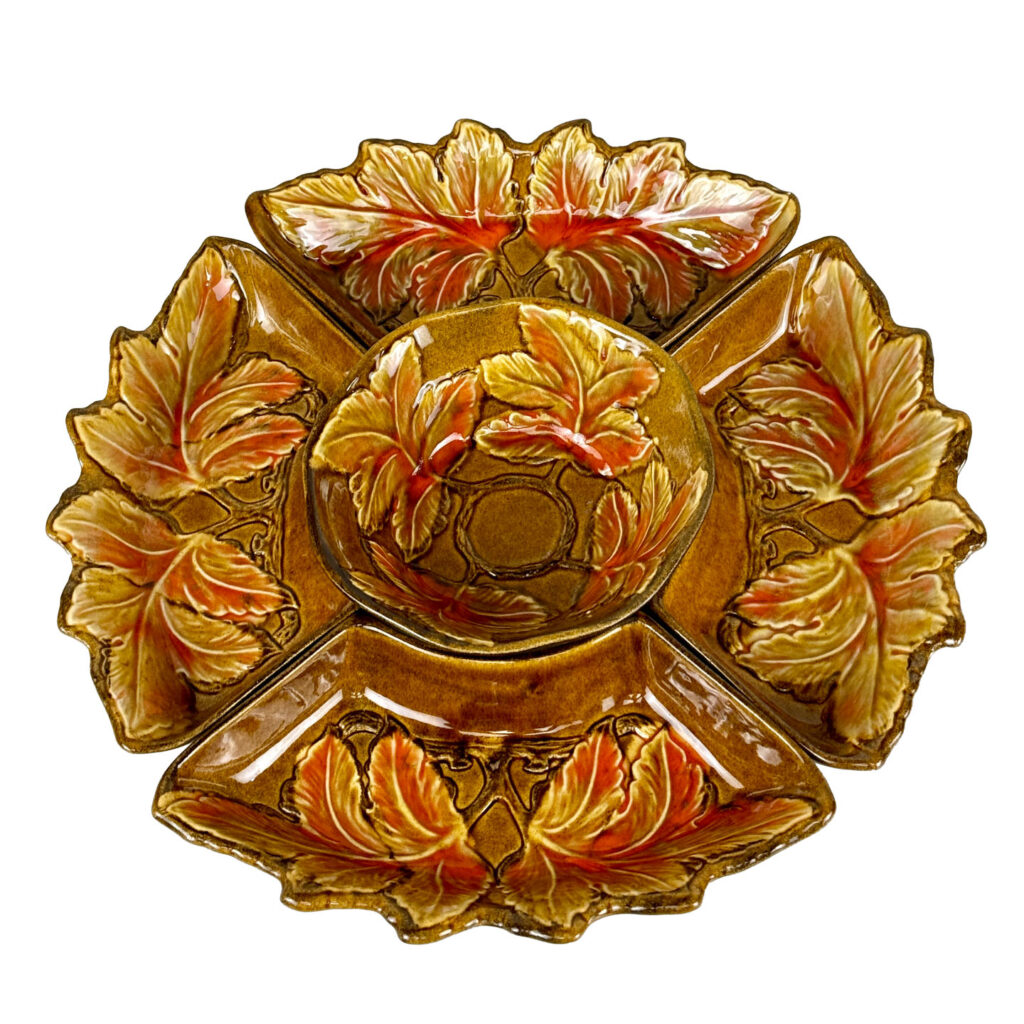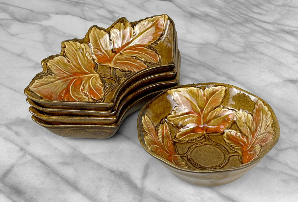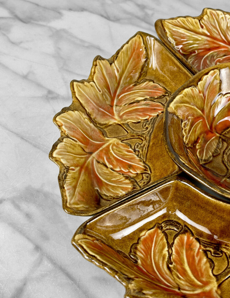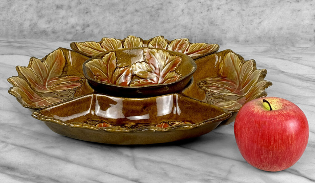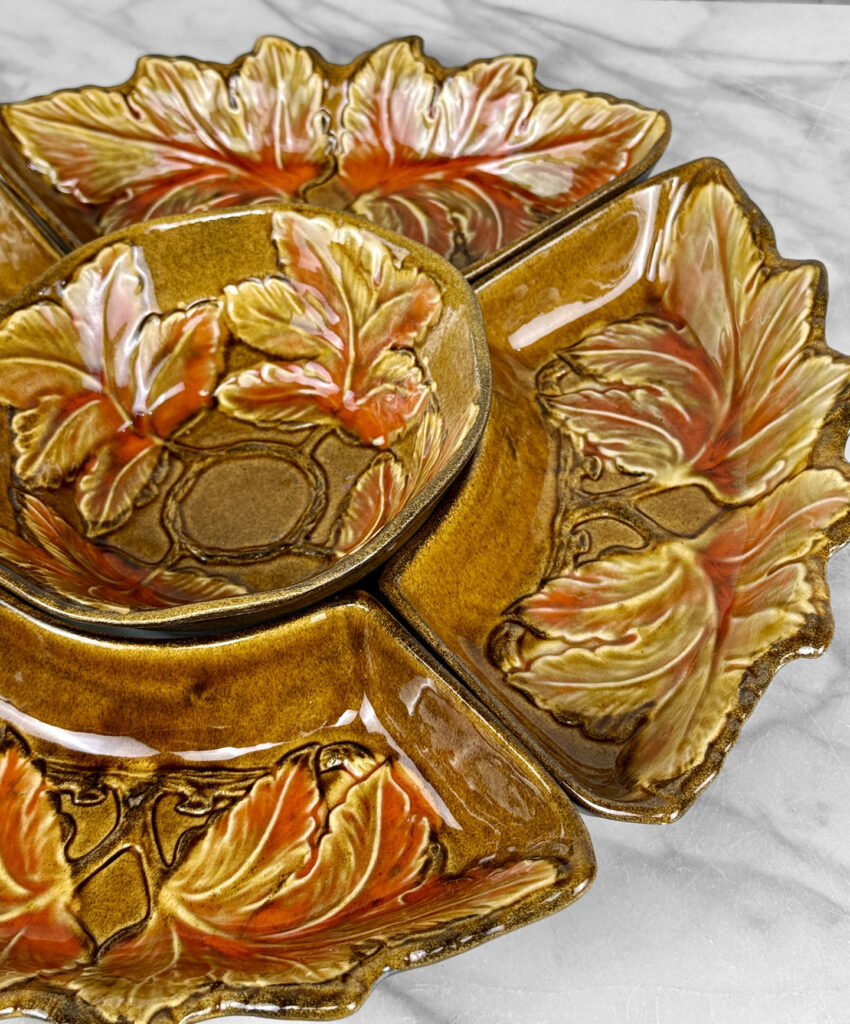 - Set Includes Center Serving Bowl & 4 Double Leaf Curved Serving Bowls