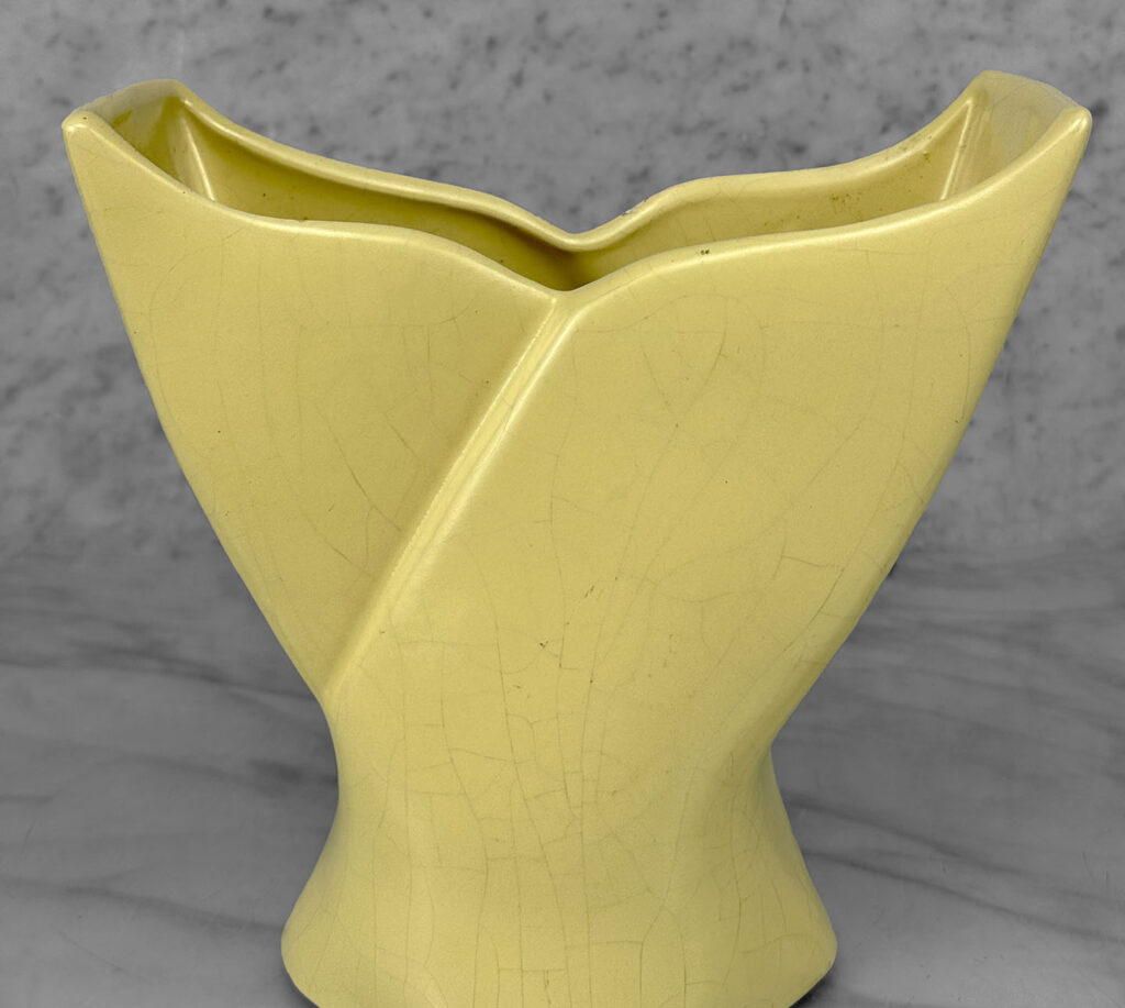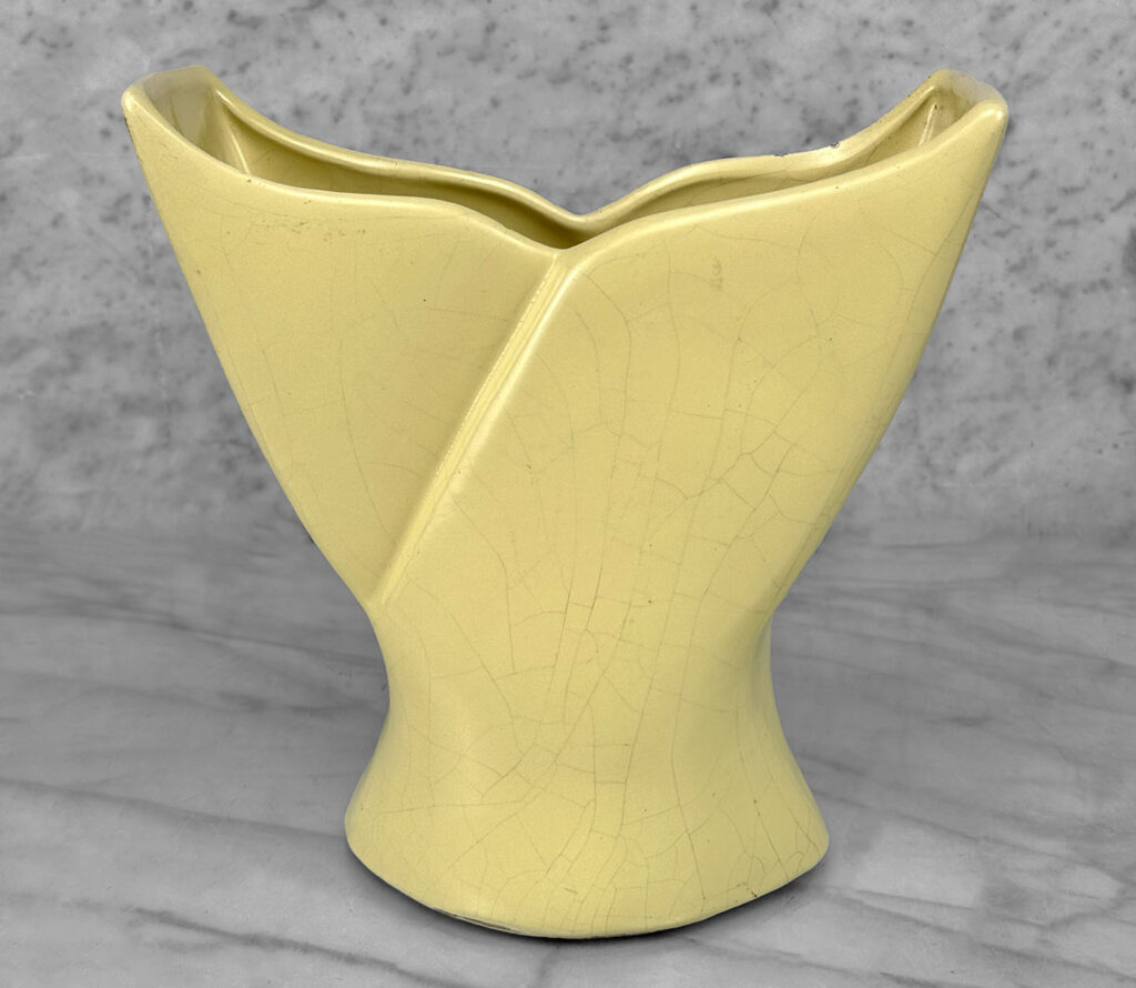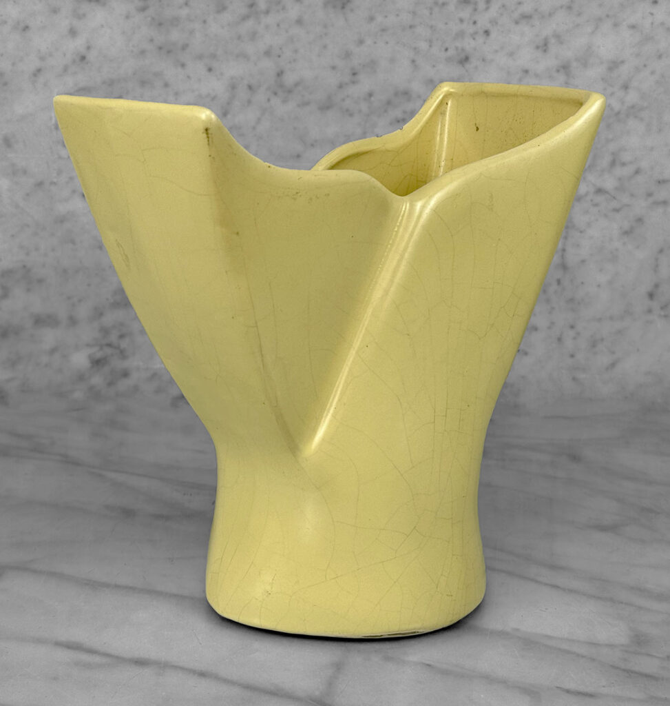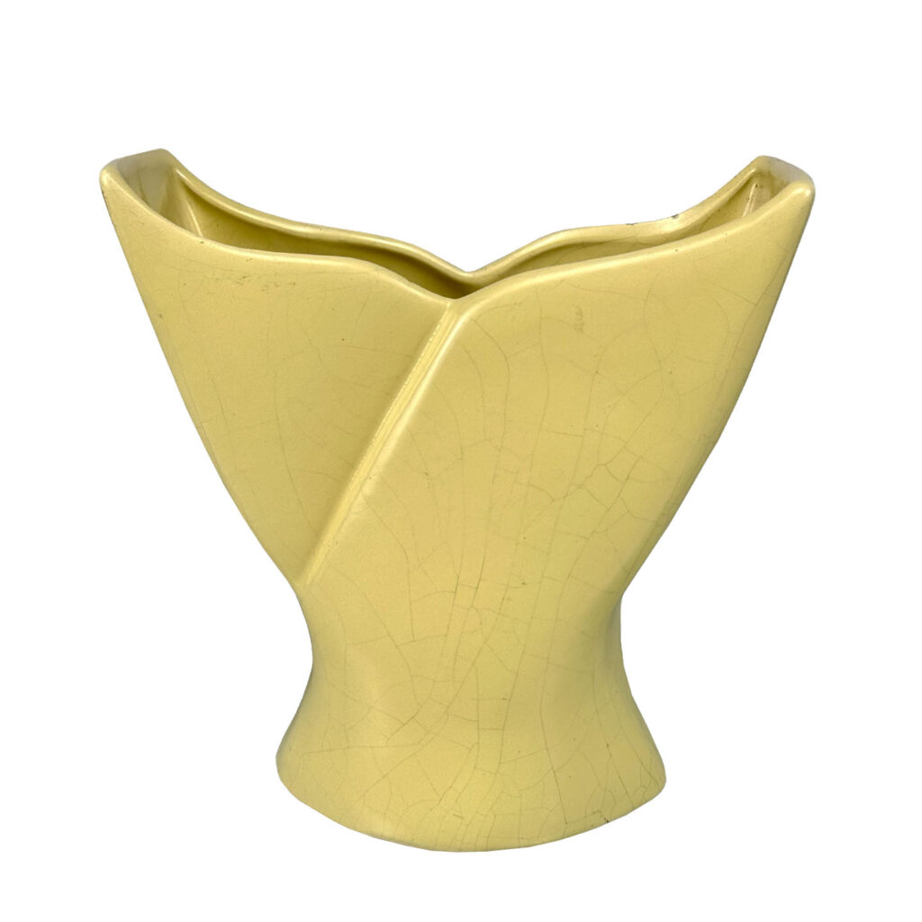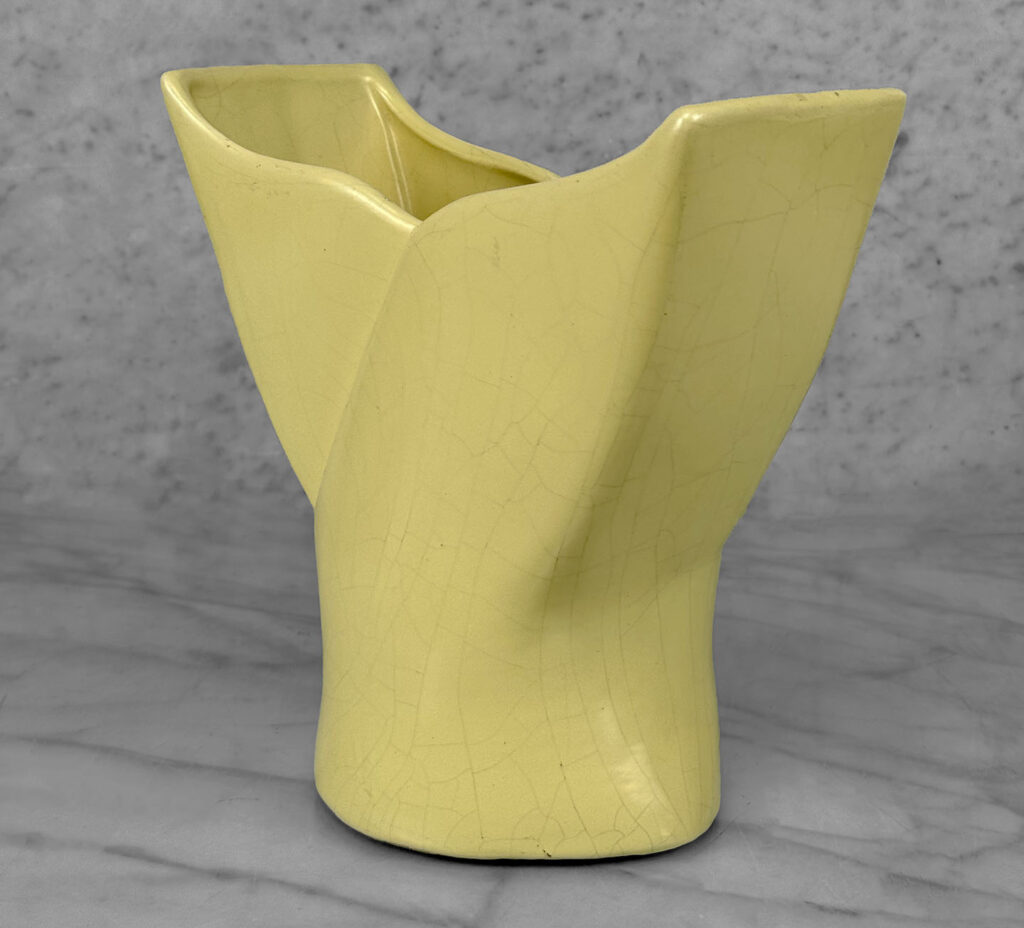 Vintage California Pottery Yellow Whale Tail Vase, c. Mid 20th Century