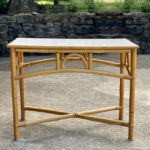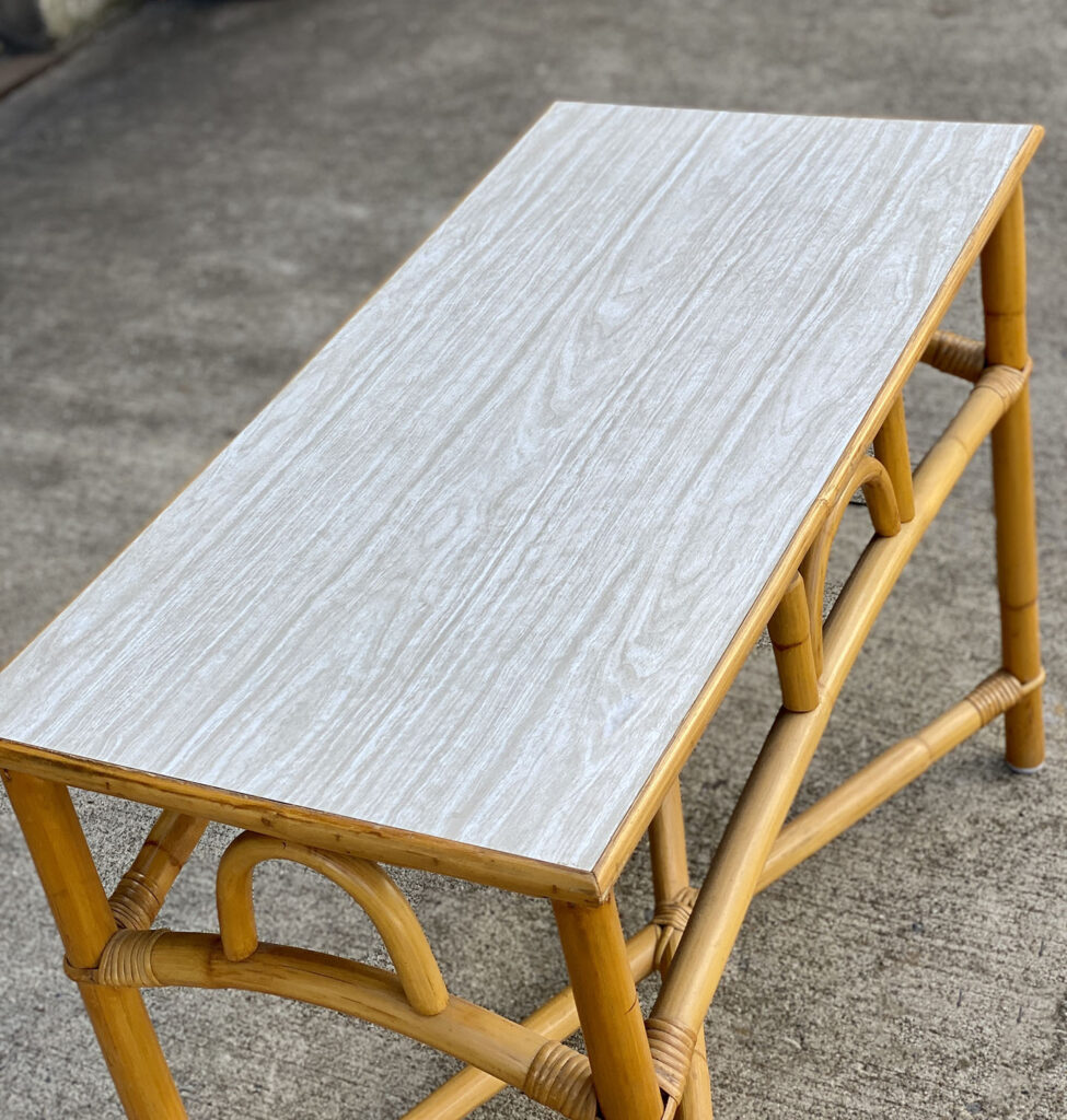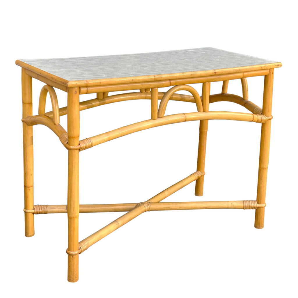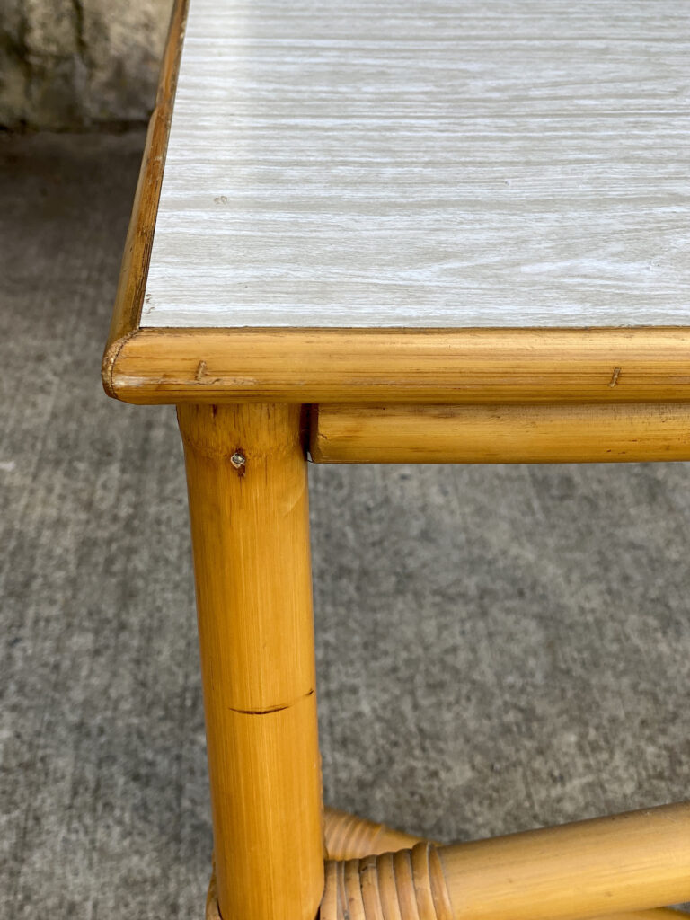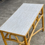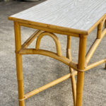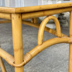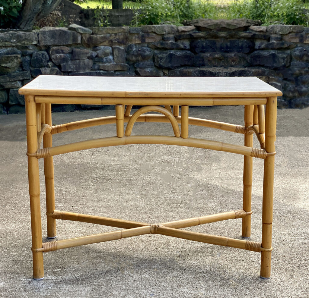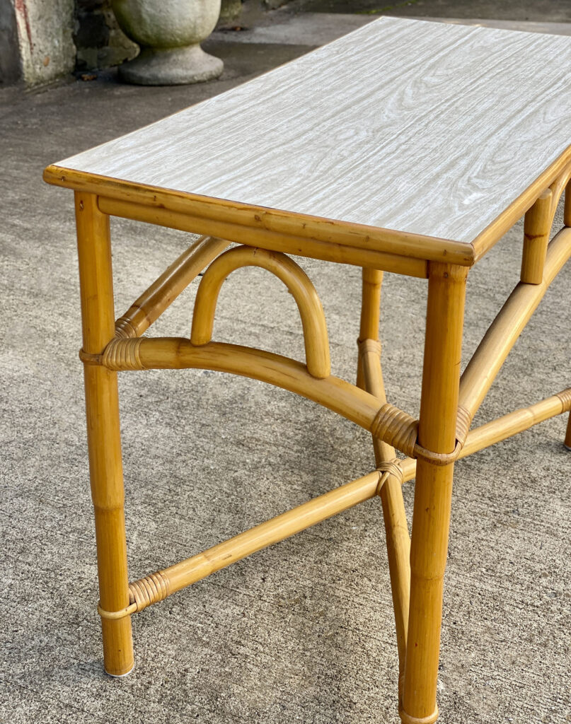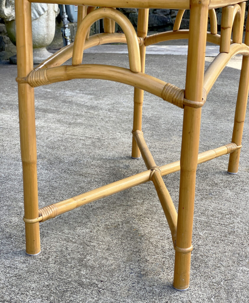 This Rattan Table was exceptionally well made, it’s both solid and sturdy. Mild surface scratches along the outer edge of the rattan and the top surface can be seen from age. The Table is in overall good condition.