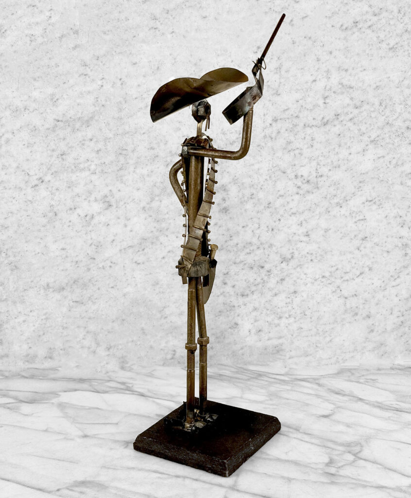 Vintage Brutalist Figural Conquistador / Don Quixote Figural Metal Art Sculpture, c.1970’s