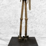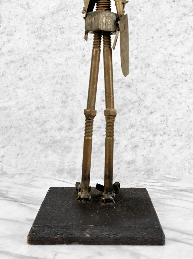 This Salvaged Metal Conquistador Sculpture is in overall good condition without any repair shown. The base shown mild wear from age, it stand flat as it should. Tarnishing to the metal is shown from age.