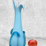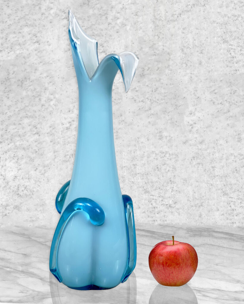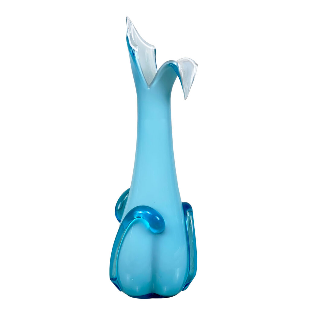 Mid-Century Italian Empoli Peacock Blue Art Glass Vase