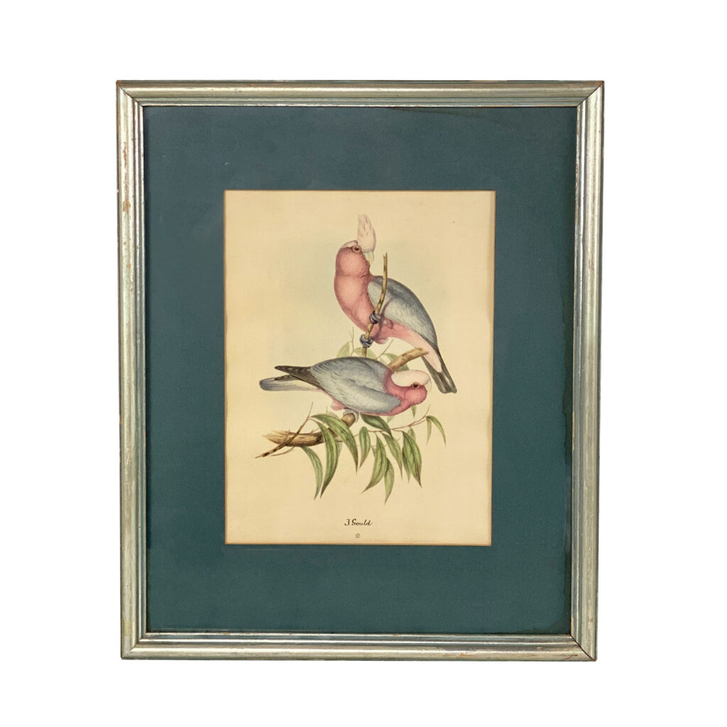 Vintage Hollywood Regency Cockatoo Bird Lithograph Print by J. Gould, c.1960’s