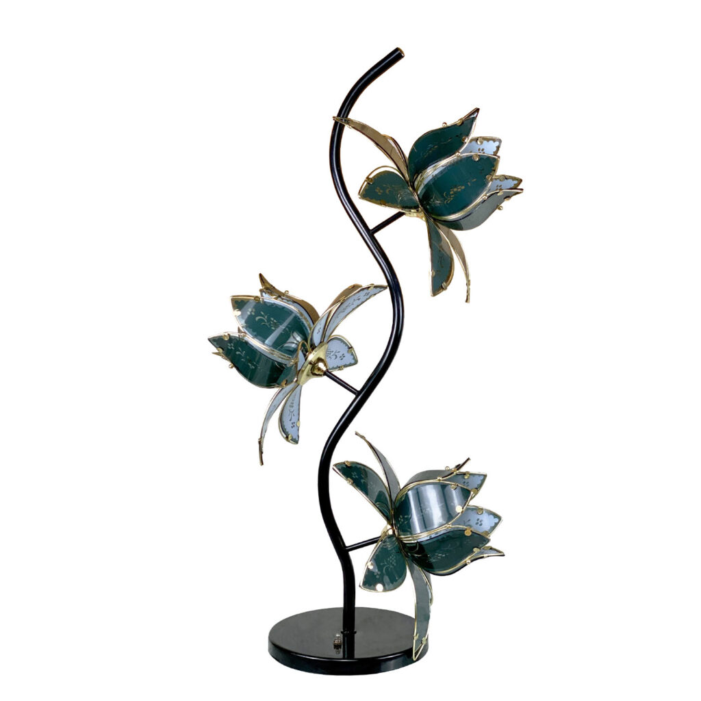 Vintage Hollywood Regency Glass Lotus Floral Table Lamp by Anthony California, c.1980’s