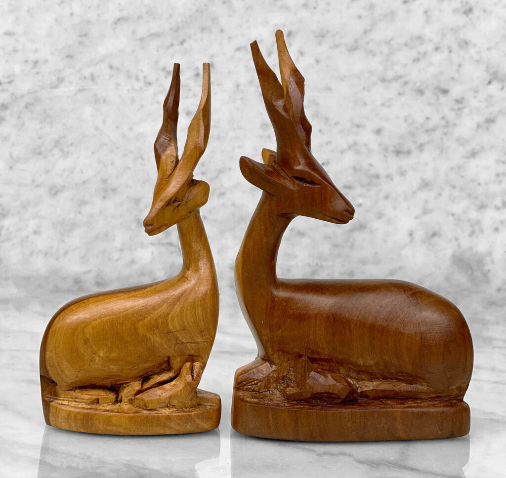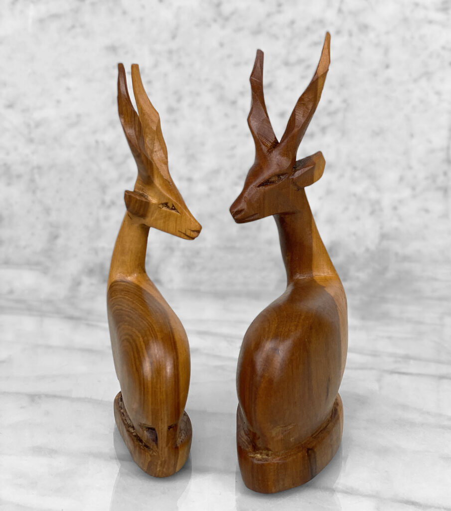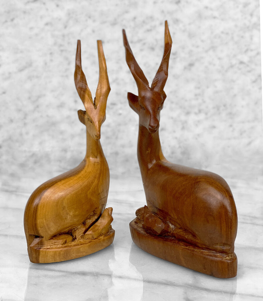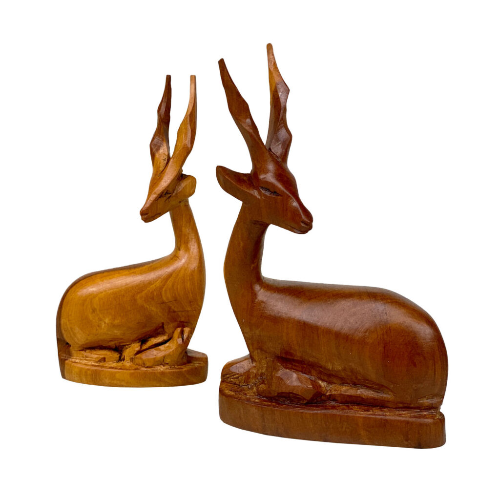 Mid-Century African Impala Gazelle Mahogany Carved Sculpture – A Pair