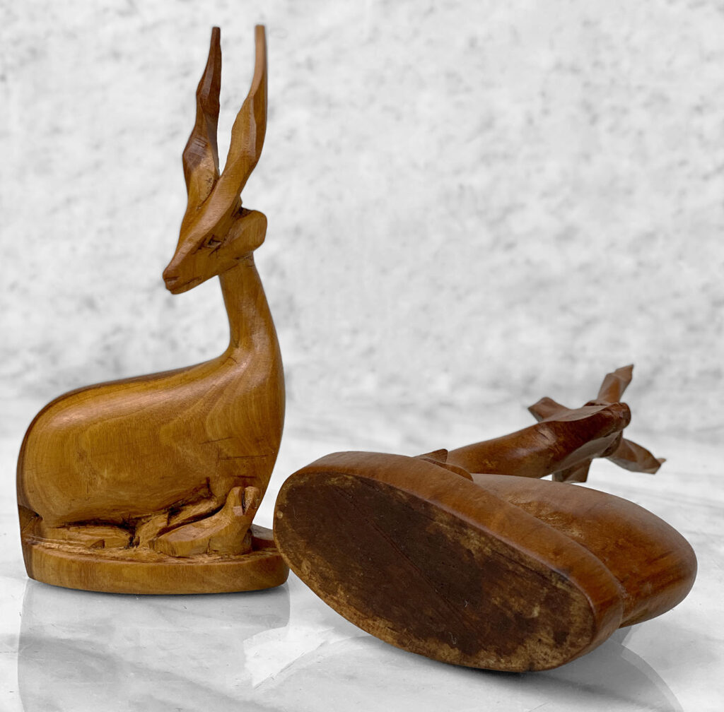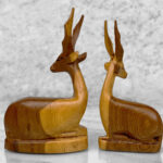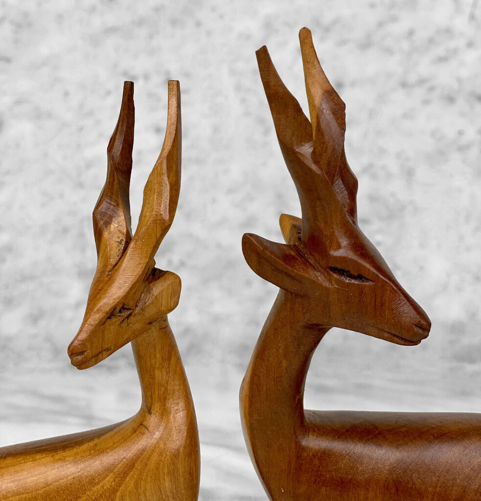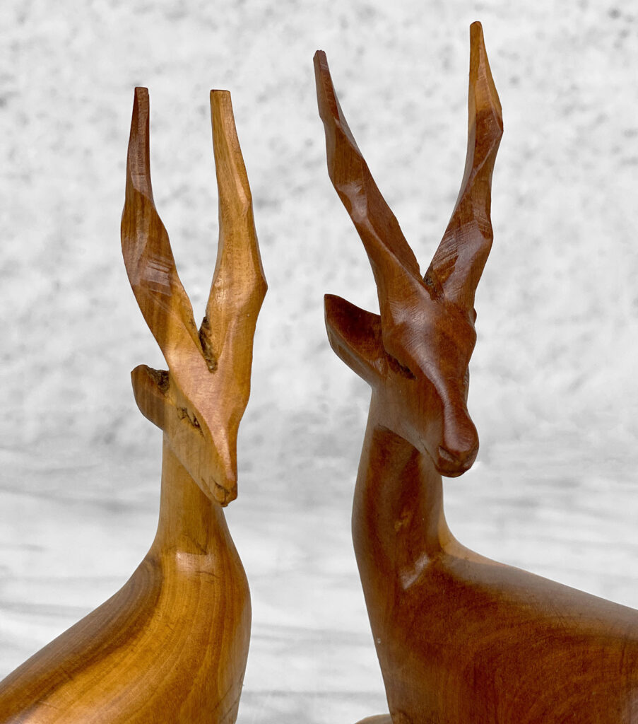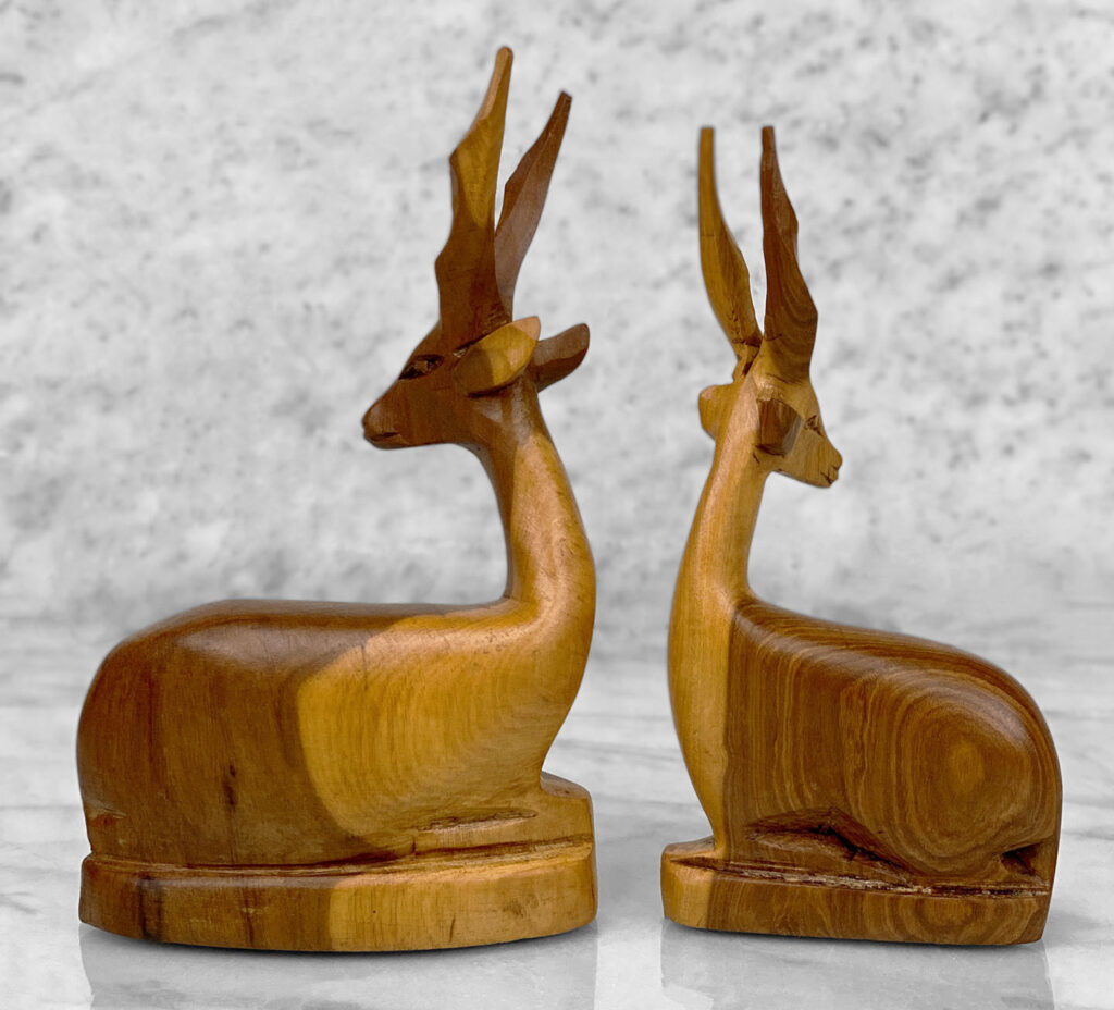 Mid-Century African Impala Gazelle Mahogany Carved Sculpture – A Pair
