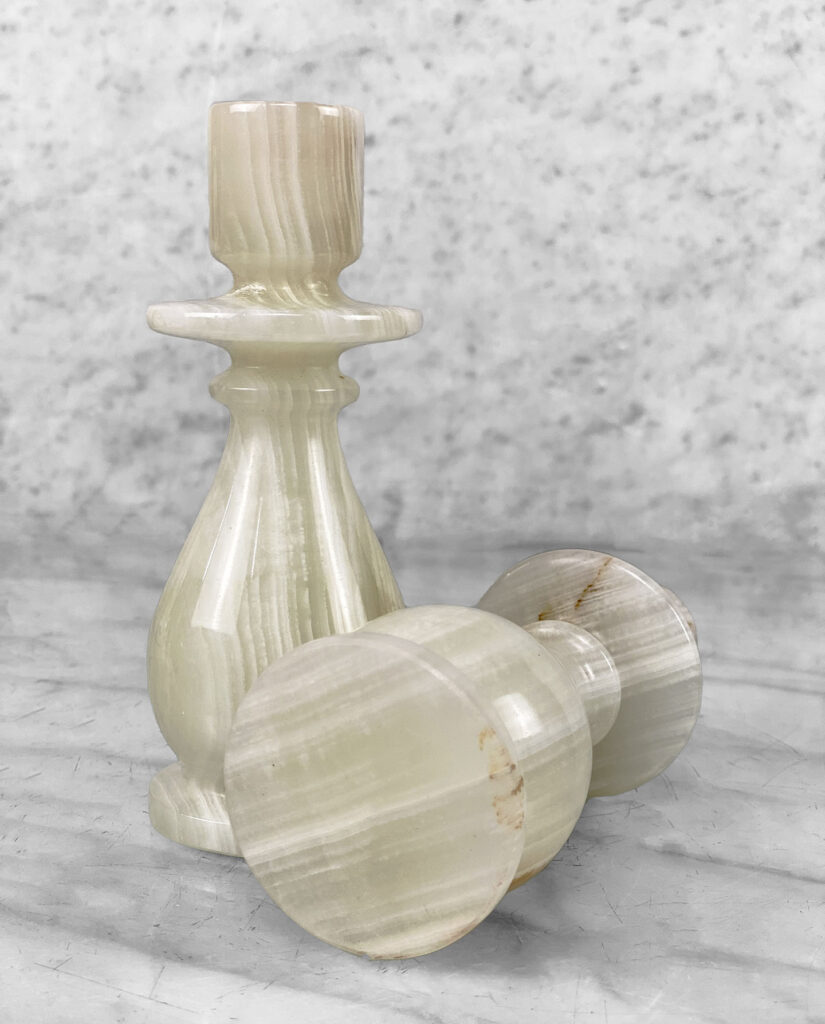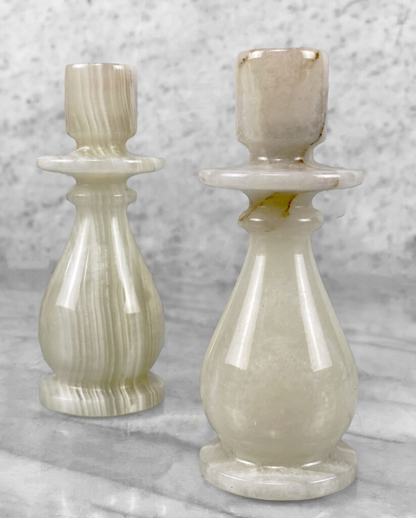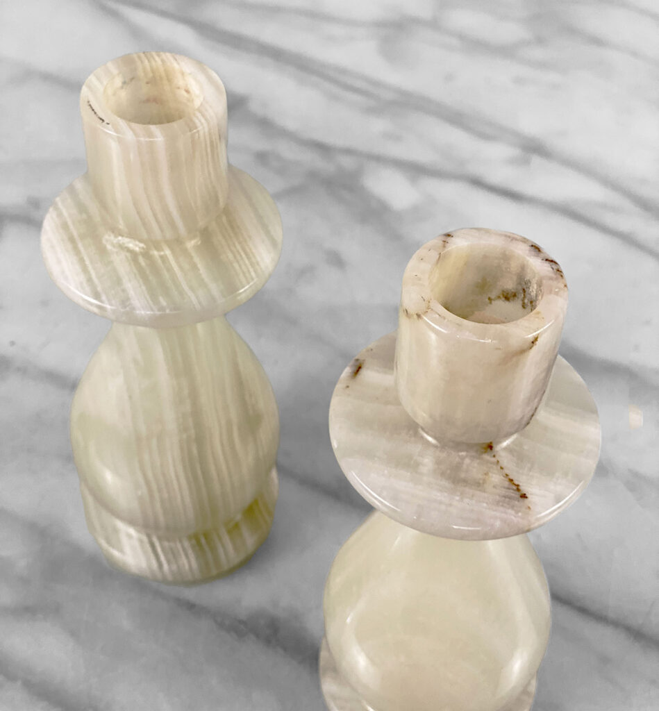Vintage Italian Onyx Stone Candlestick Holders – A Pair