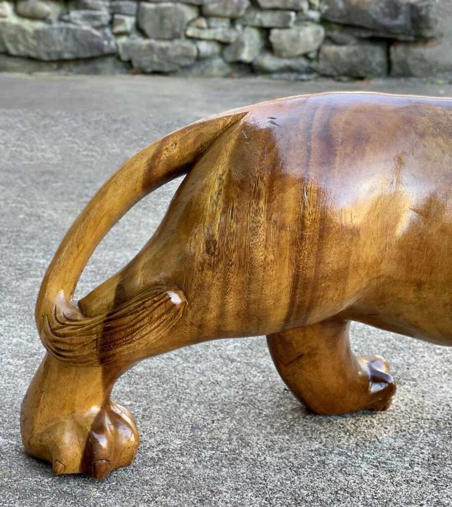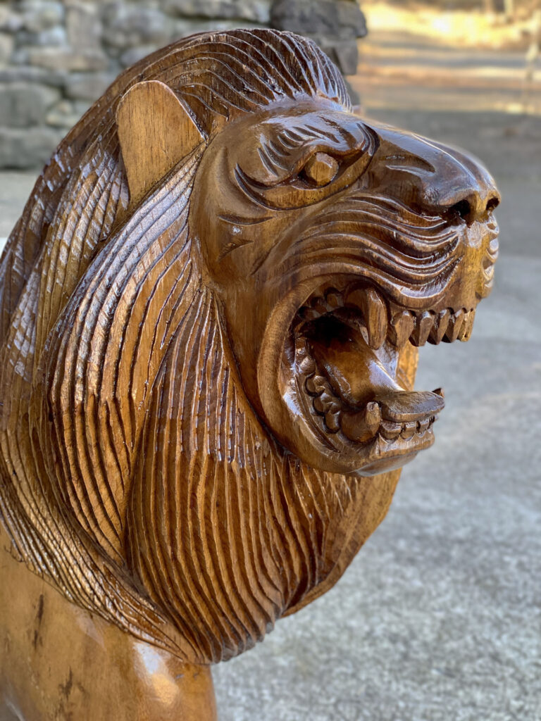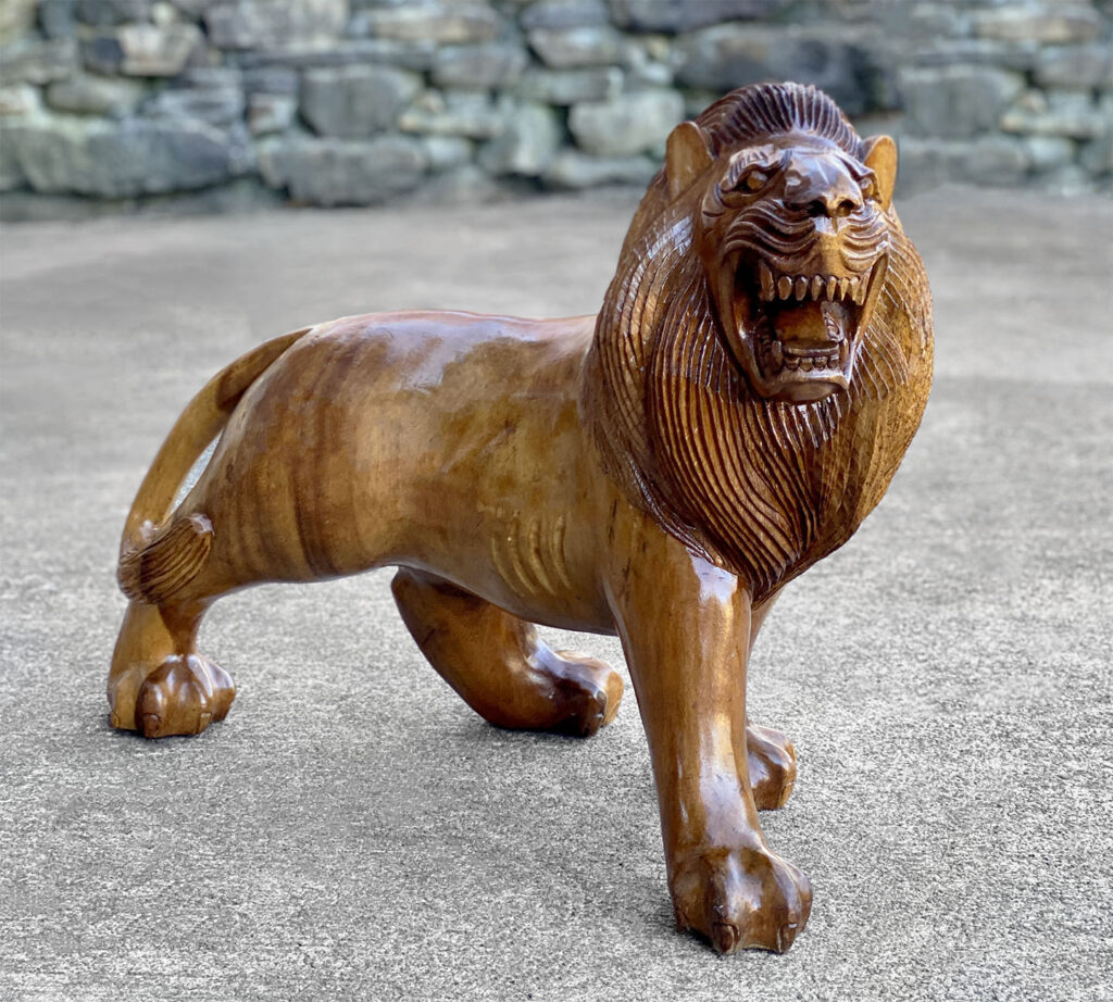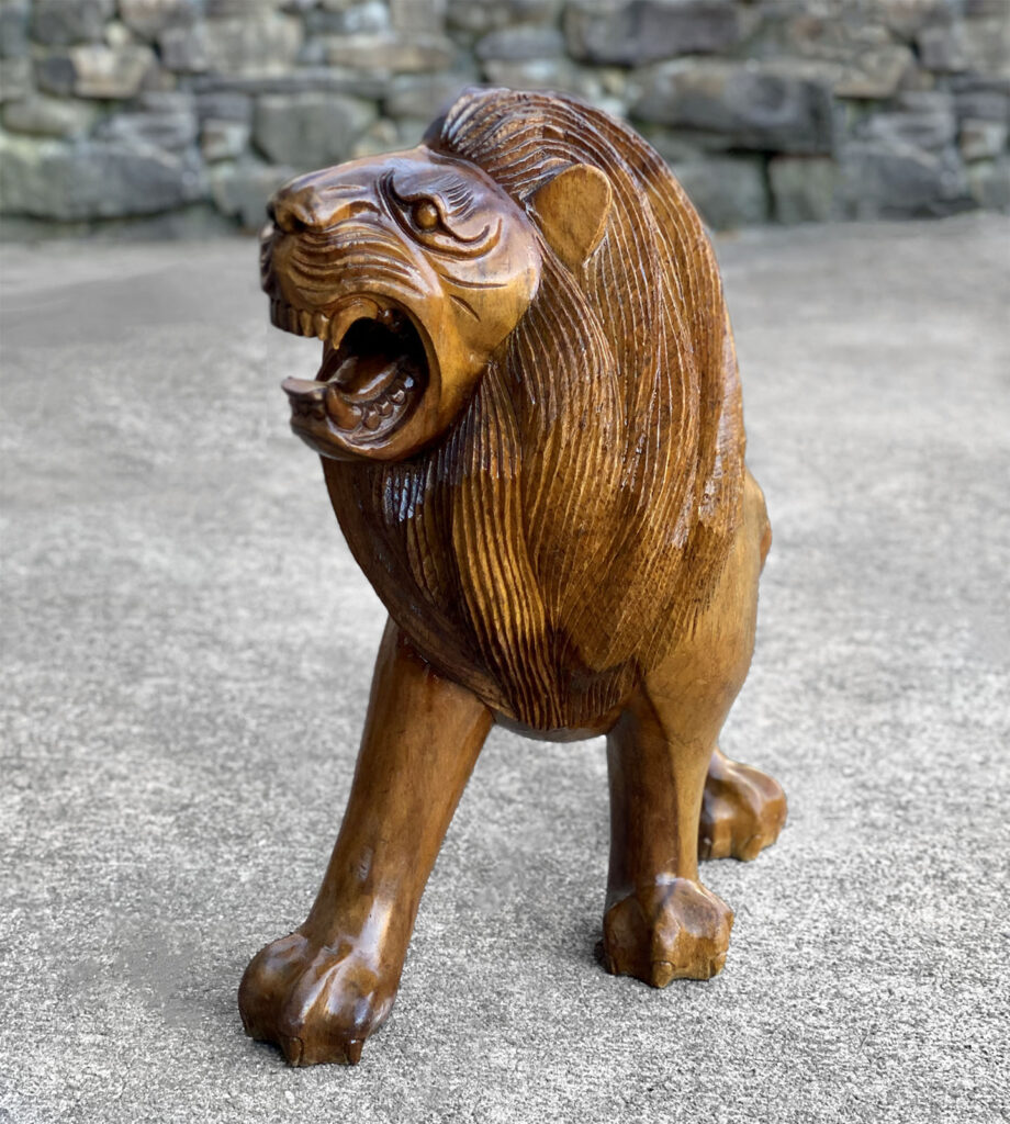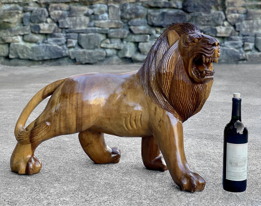 This Mahogany Lion Statue was exceptionally well made, it’s very solid, sturdy and heavy. Mild surface scratches and finish blemishes are shown from age. There aren’t any splits in the mahogany or repairs shown.
