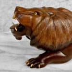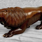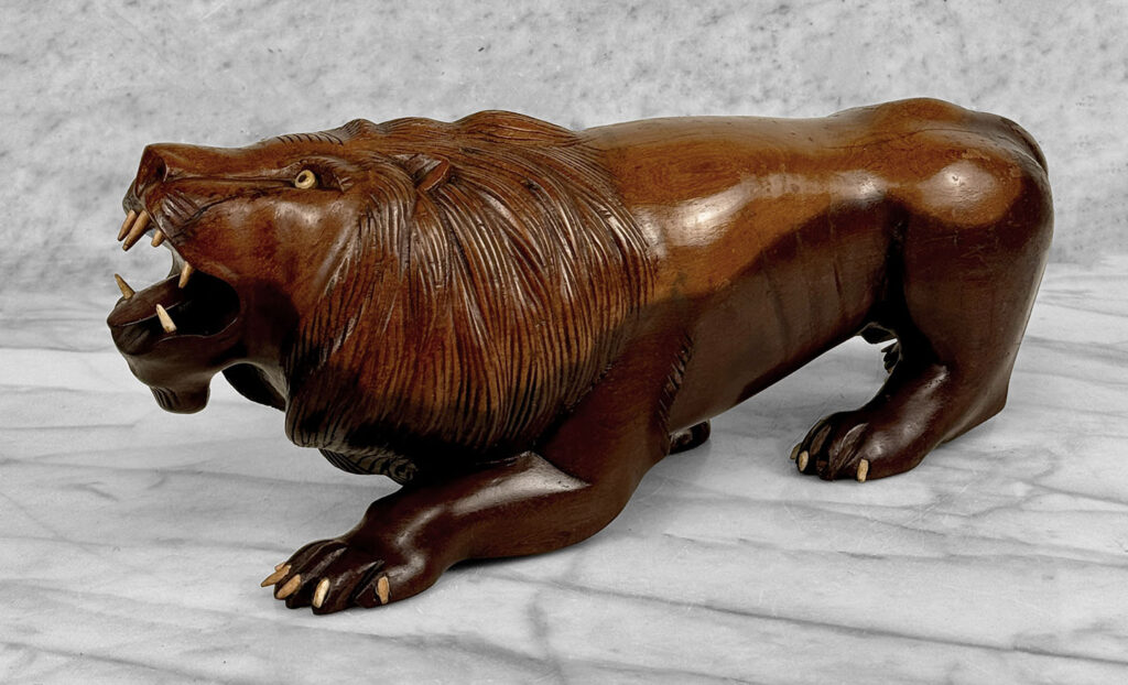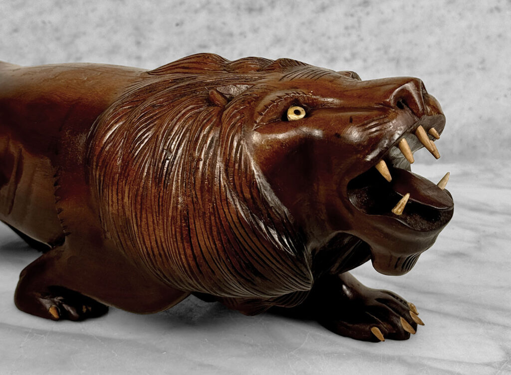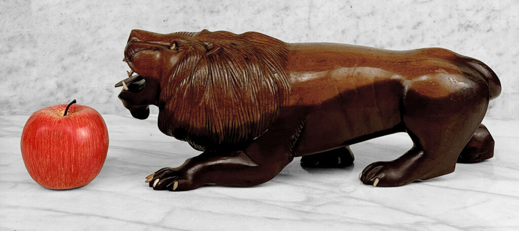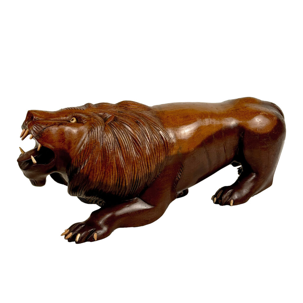 Vintage 15″ Traditional Mahogany Lion Carved Sculpture