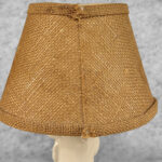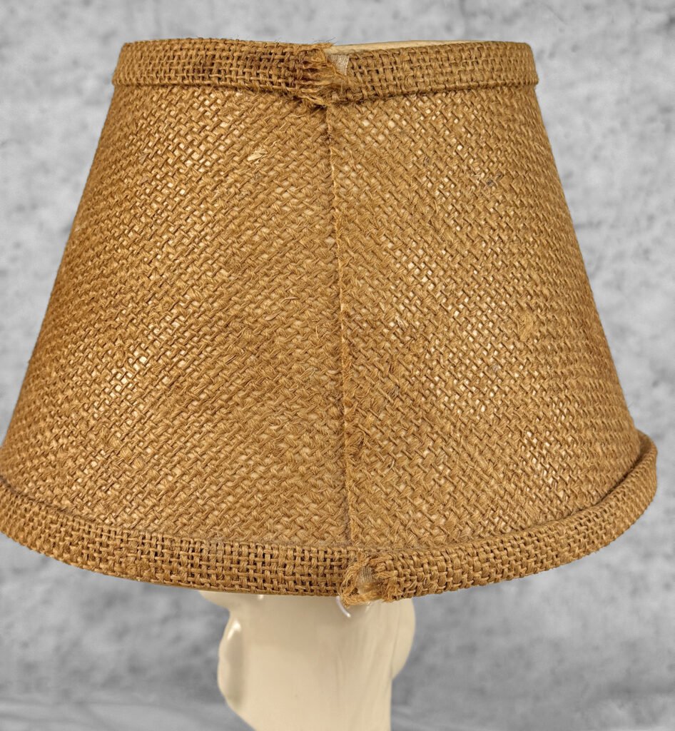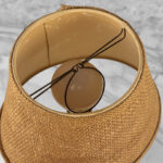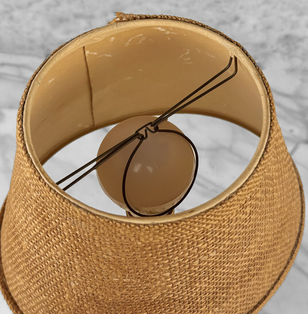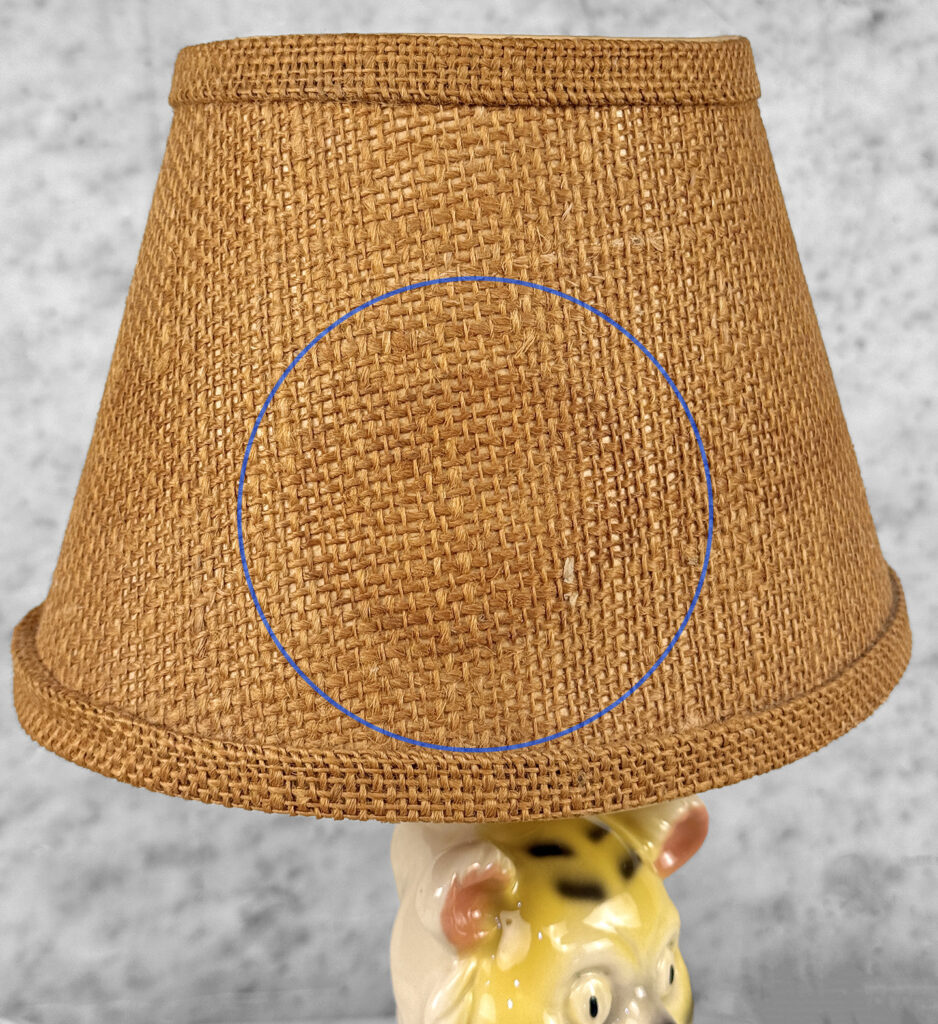 Overall good condition, fully tested and works as it should. It does not require rewiring. A stain along the shade is shown as well as light fraying along the backside hem.