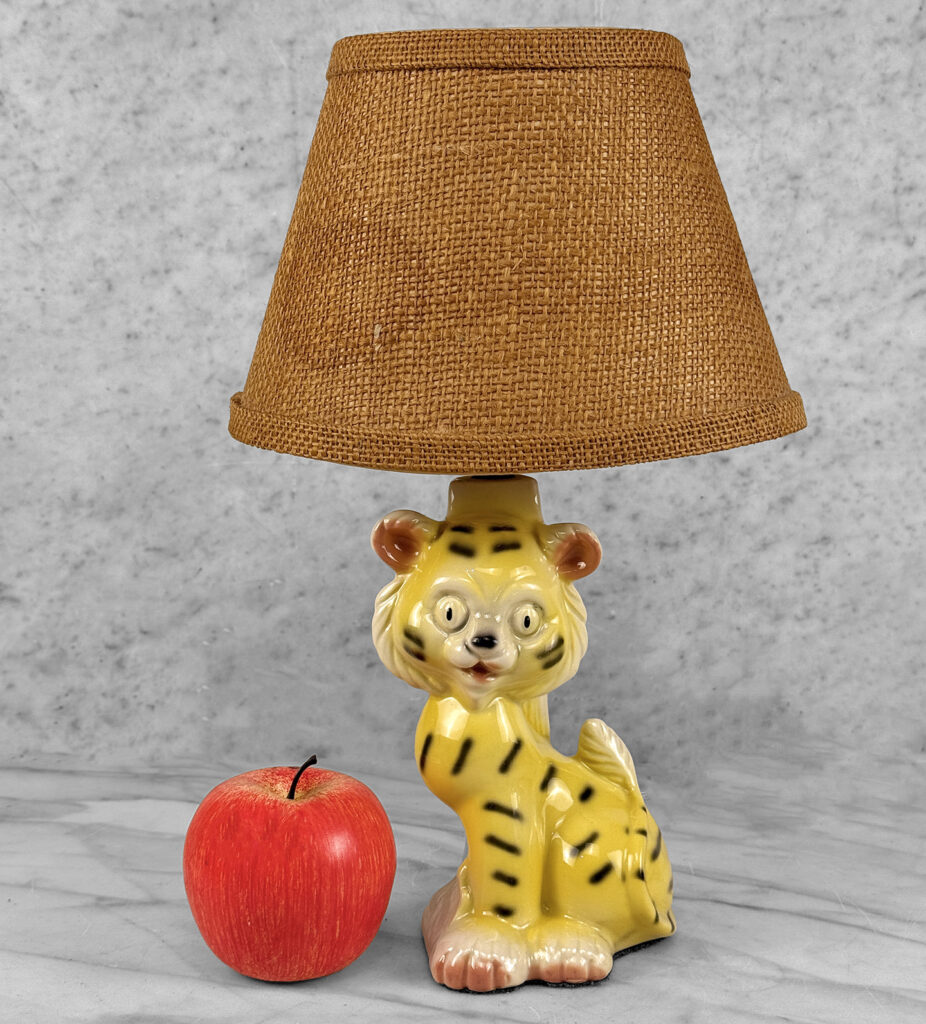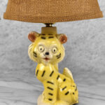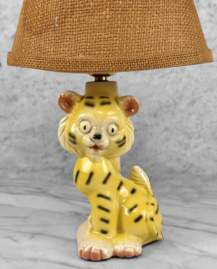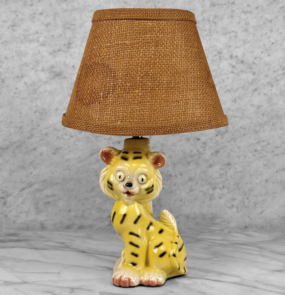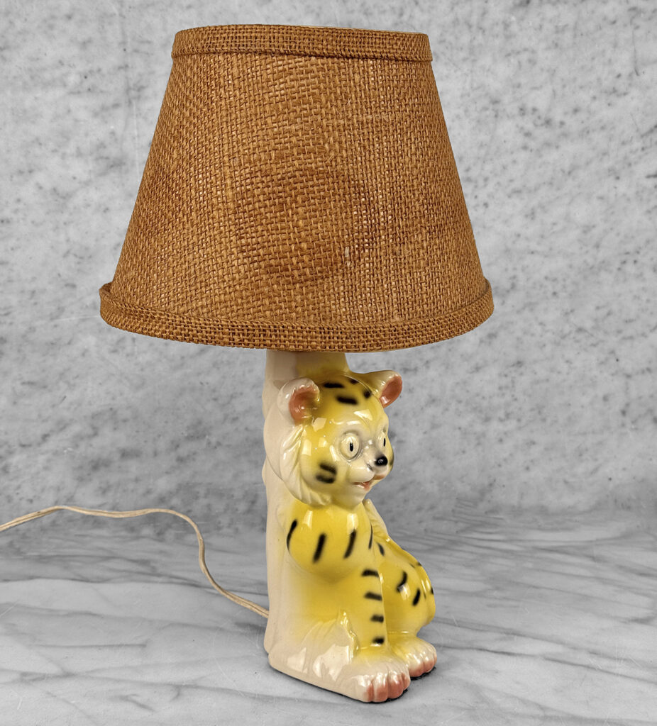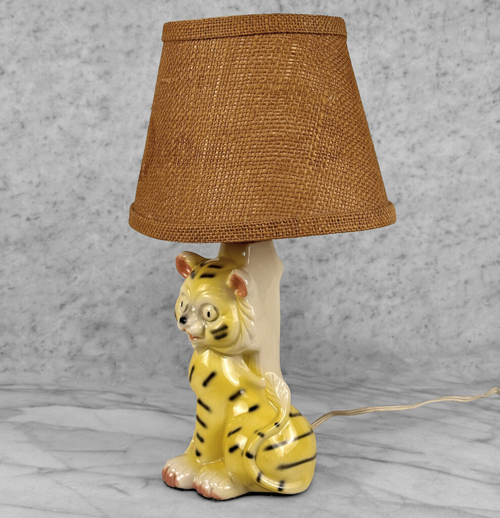 A Boho Jungle Tiger Porcelain Night Light Table Lamp, c. Mid 20th Century