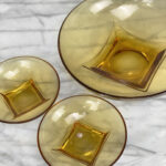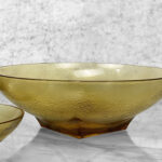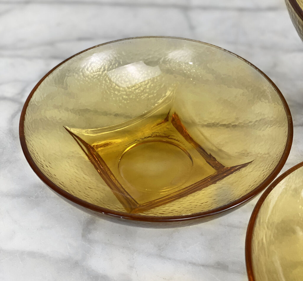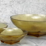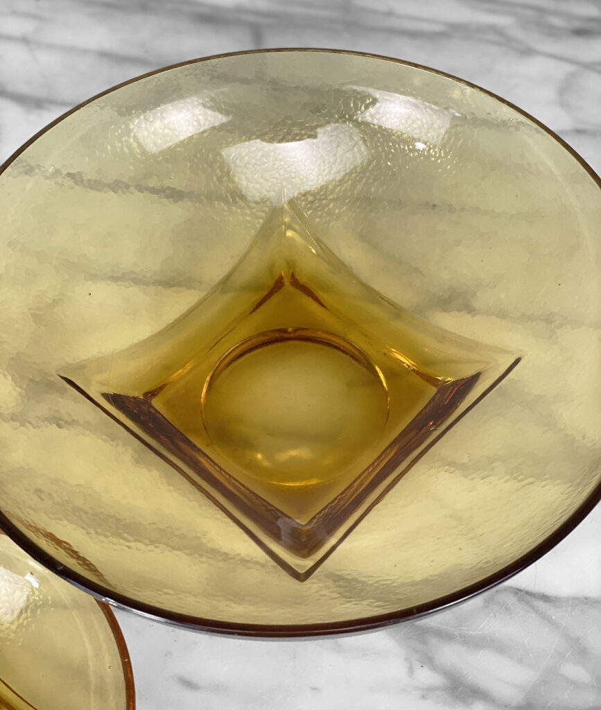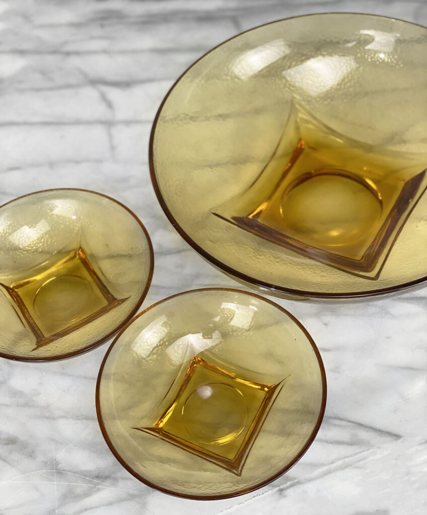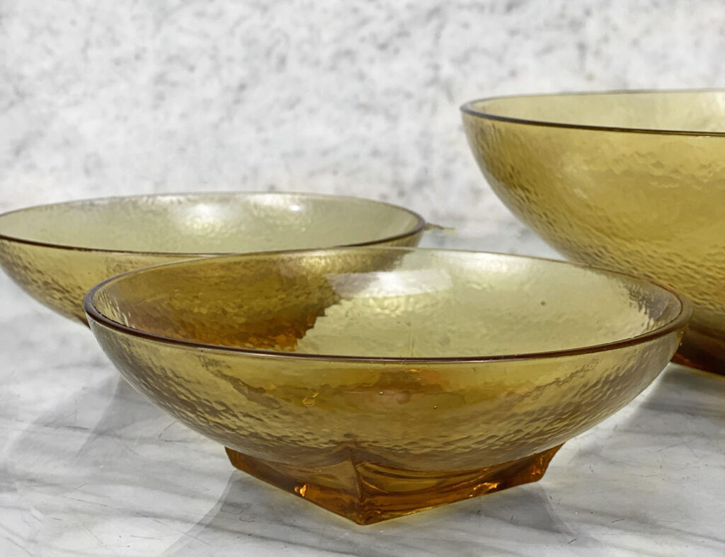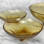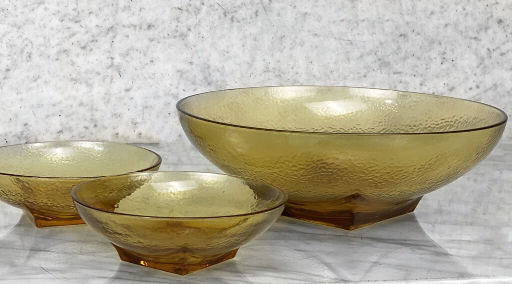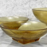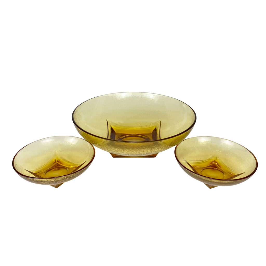 Mid-Century Amber Ripple Art Glass Serving Pedestal Bowls – Set of 3 , c. Mid 20th Century