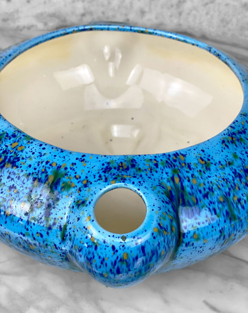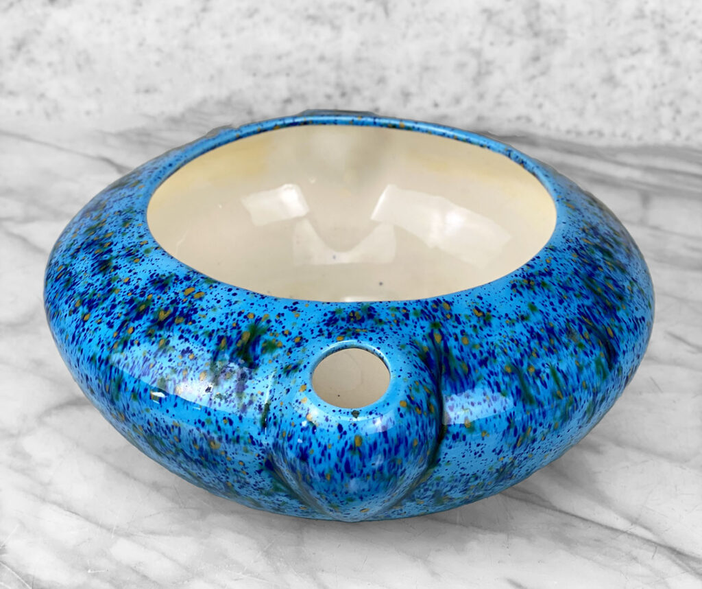 Mid-Century Atomic Blue Ceramic Art Pottery Jardiniere Planter