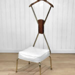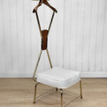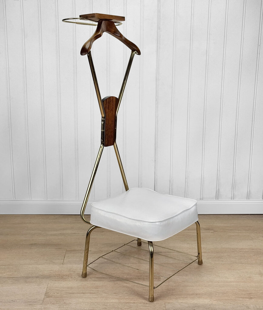 Mid-Century Atomic Teak & White Upholstered Wardrobe Valet Seat