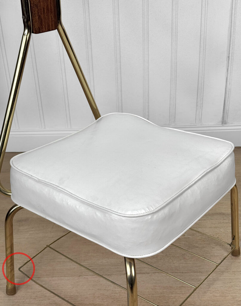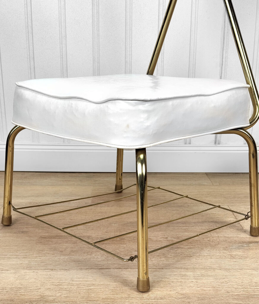 • Original White Vinyl Upholstered Seat with Magazine Rack Bottom