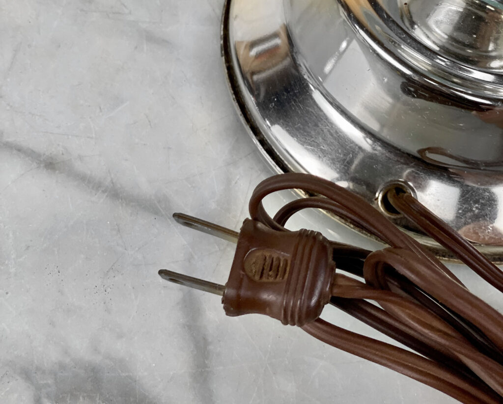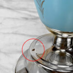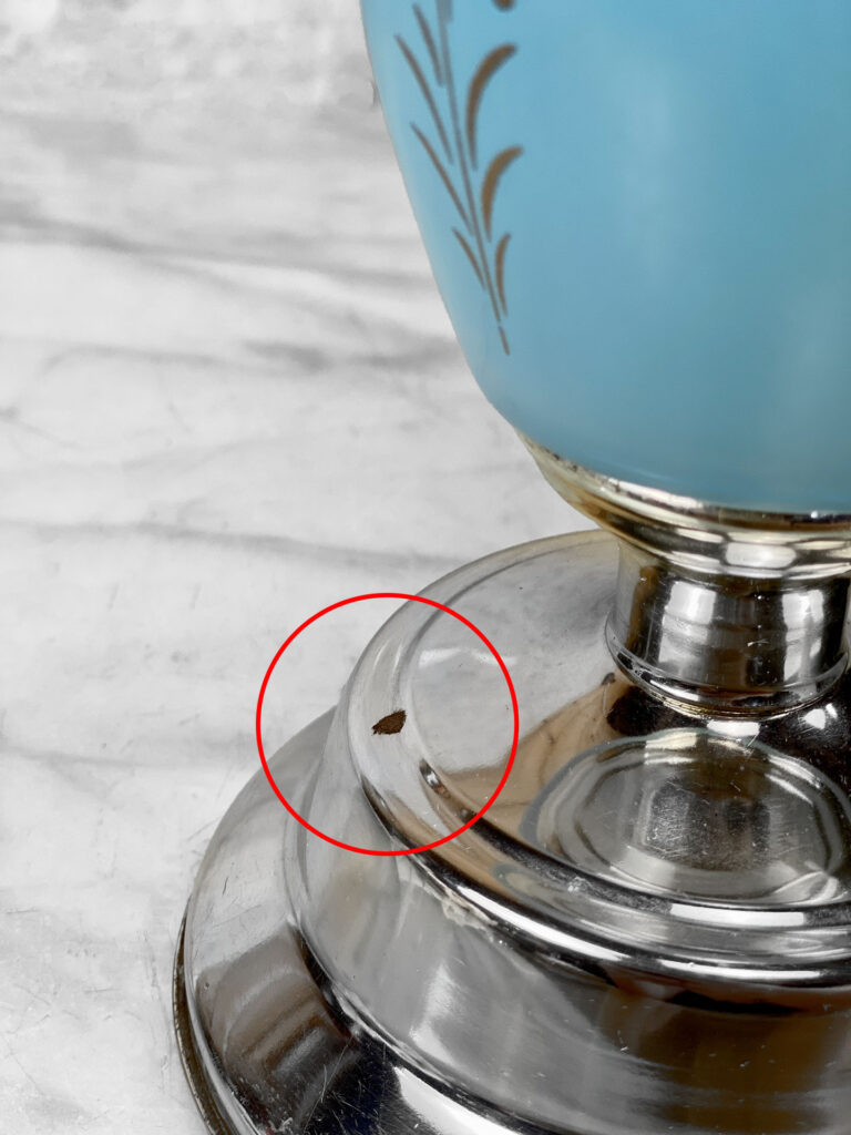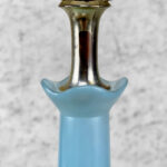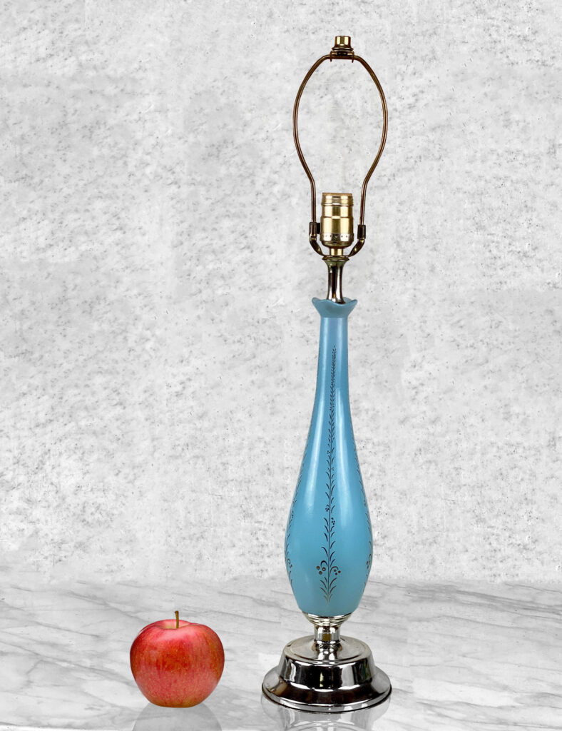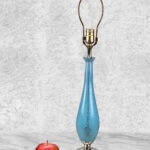 This Sculptural Blue Glass Table Lamp is fully tested and works as it should, it does not require rewiring. The body of the lamp is free of any cracks, chips or imperfections. A mark along the base of the lamp can be seen, this area is circled in our photo gallery to reference.