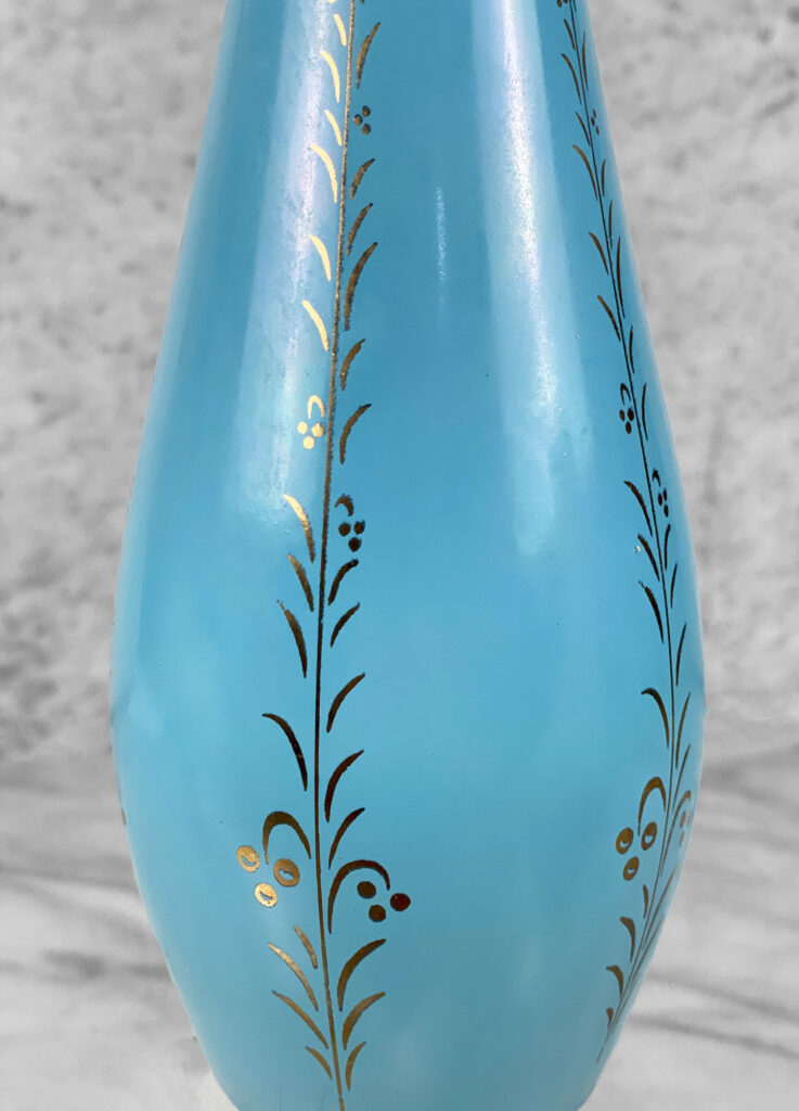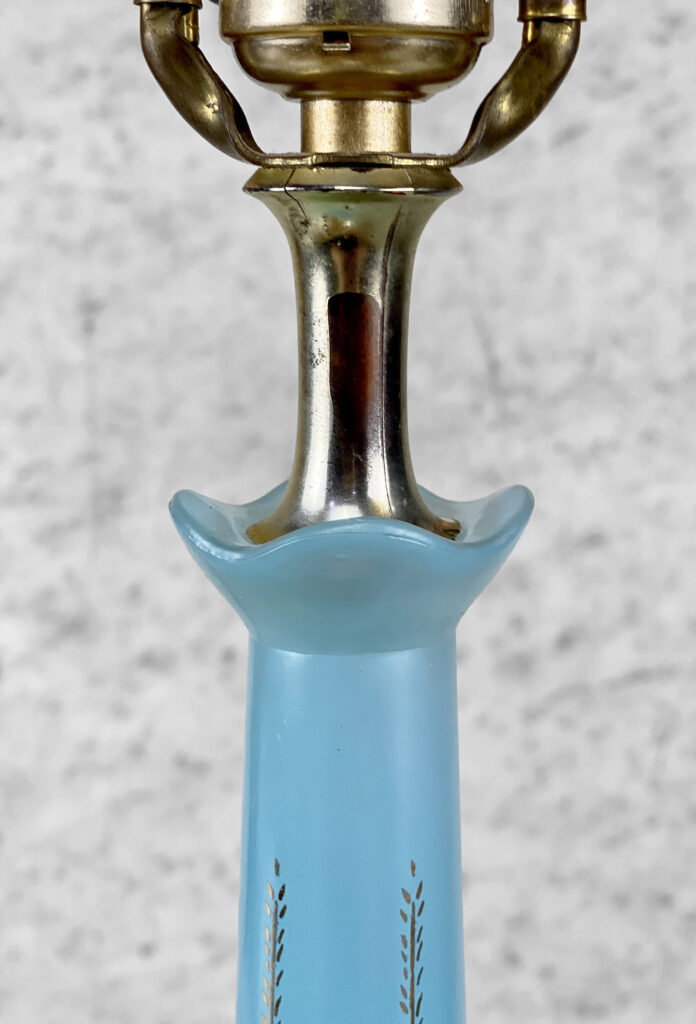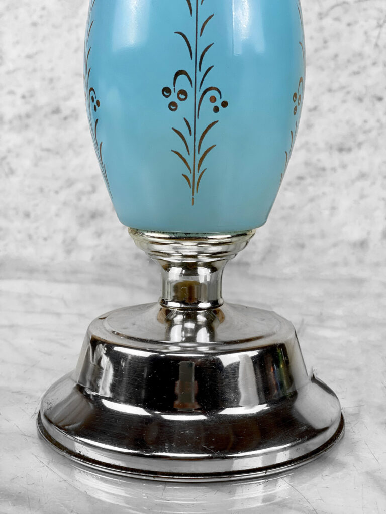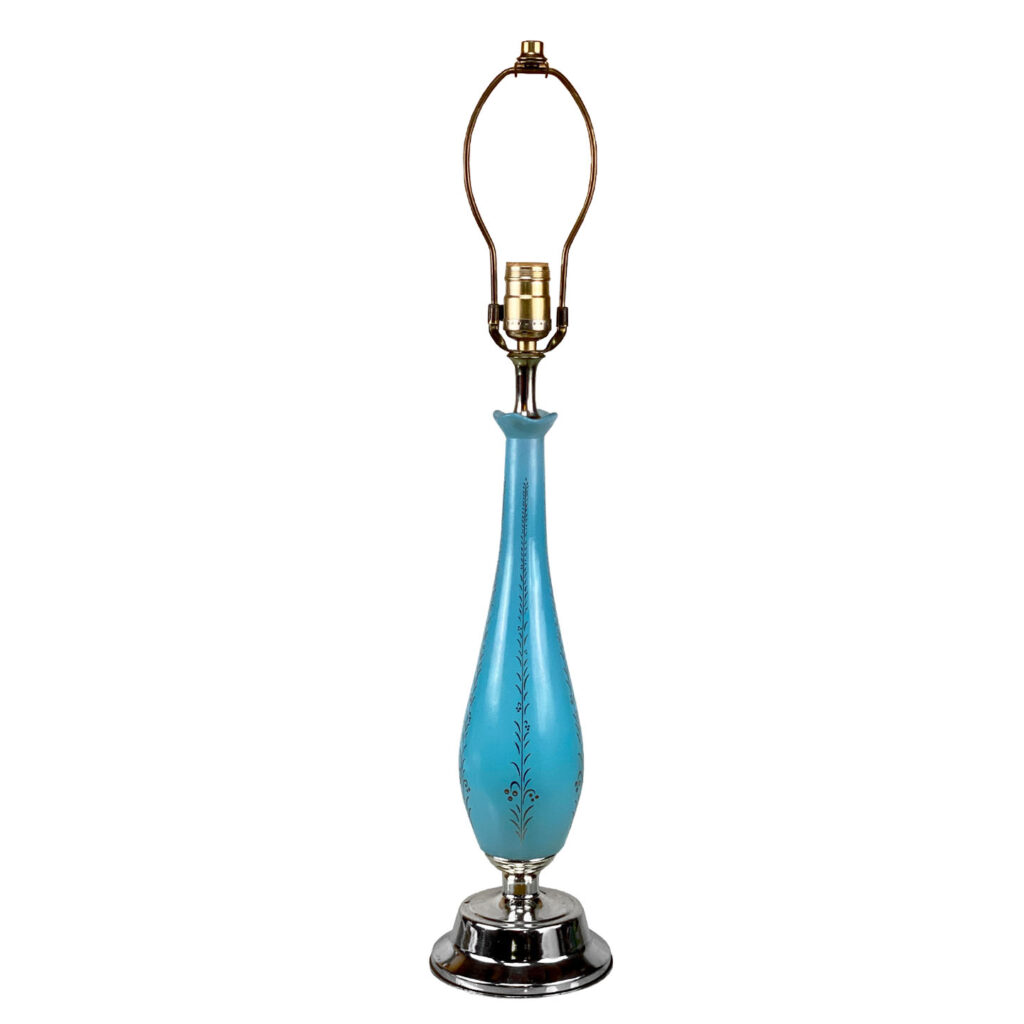 Mid-Century Turquoise Blue Glass Golden Foliage Motif Table Lamp, c. Mid 20th Century