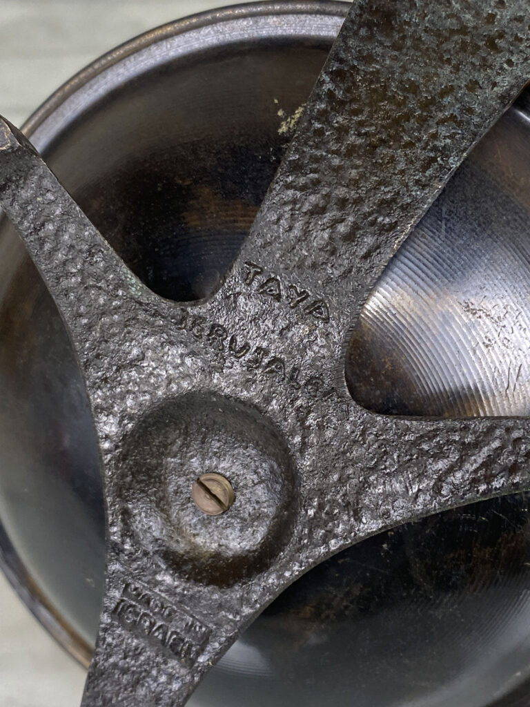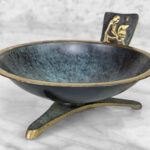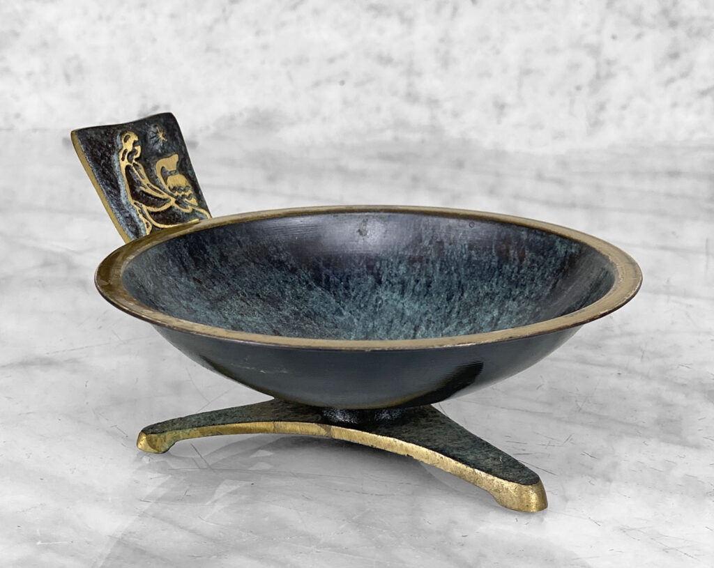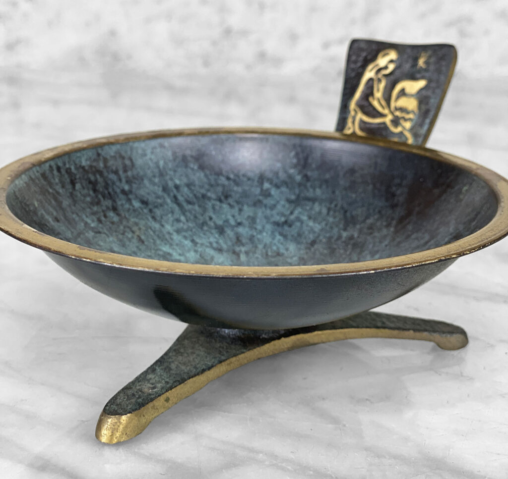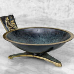 Mid-Century Brass & Green Enamel Serving Footed Bowl by Taya, Israel, c. Mid 20th Century