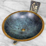 - Crafted of Solid Brass and Finished in an Original Marbled Green Enamel