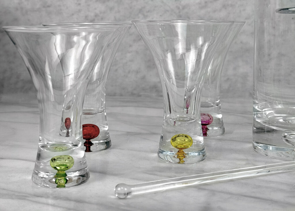- Attractive Blown Glass Bottoms with Multi-Colored Bubble Motif
